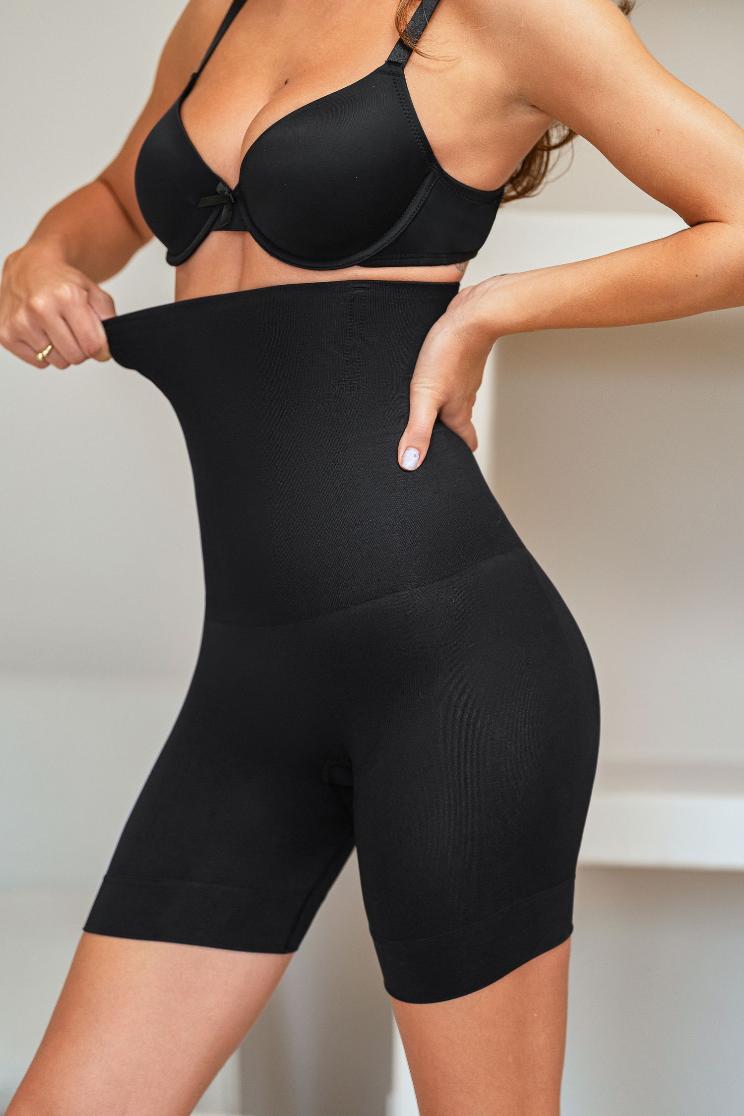 The Flawless Fit Black Shapewear Bottoms offer a sleek, confident silhouette with high-waisted coverage and medium compression. Featuring abdominal support, they smooth and sculpt for a comfortable, invisible fit under any outfit.