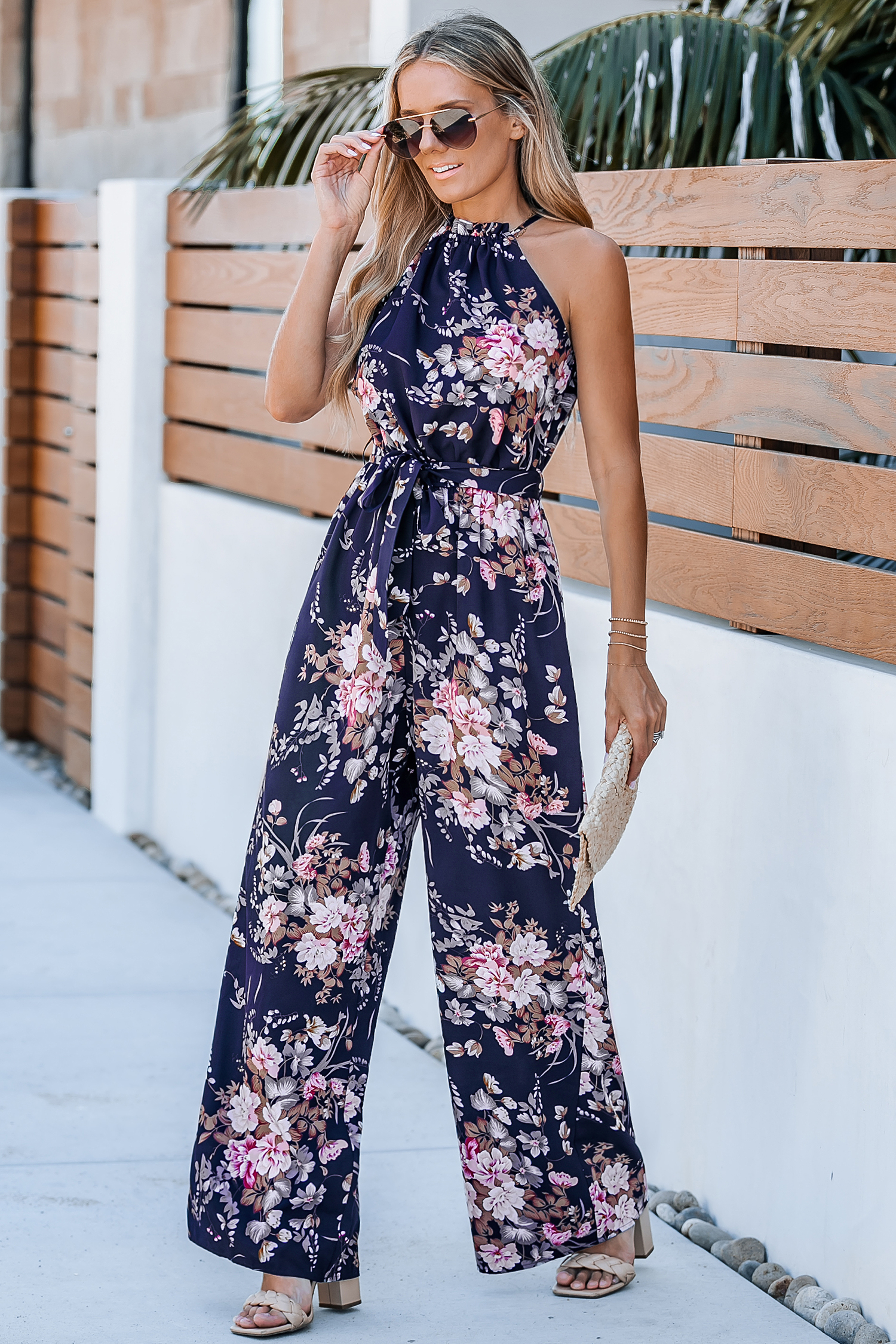 HomeFloral Print Belted Sleeveless Jumpsuit