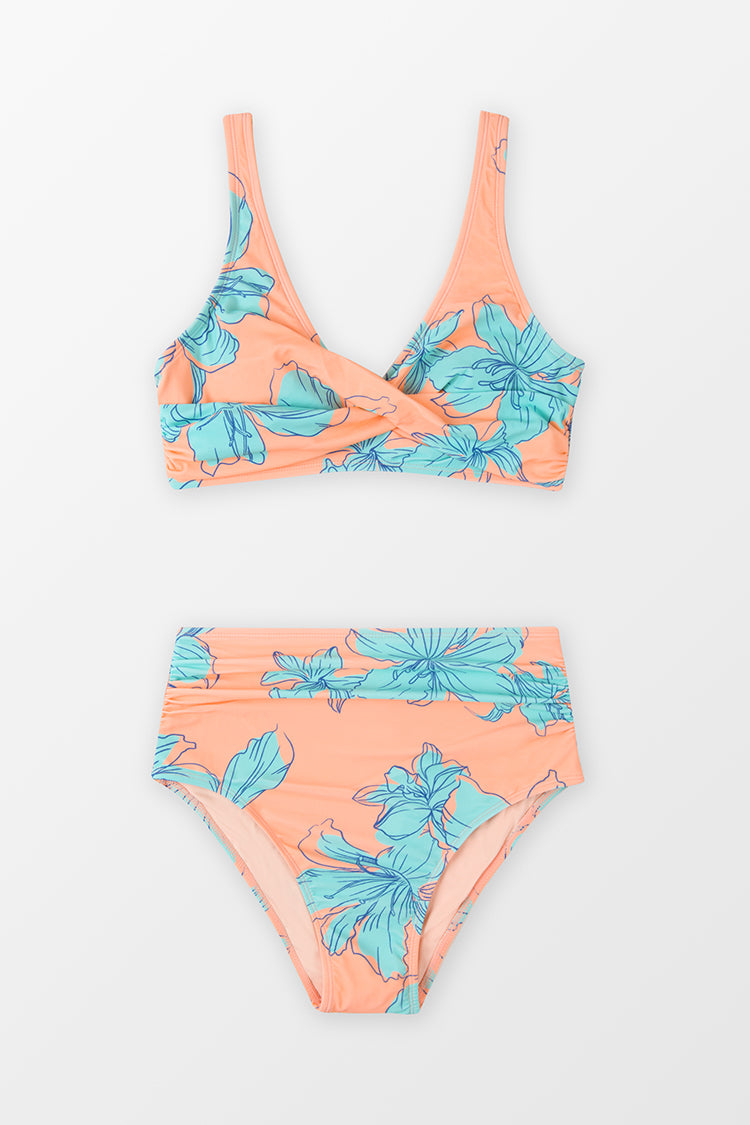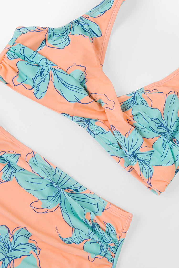 Floral Wrap Front Bralette & Shirred High Waist Bikini Swimsuit