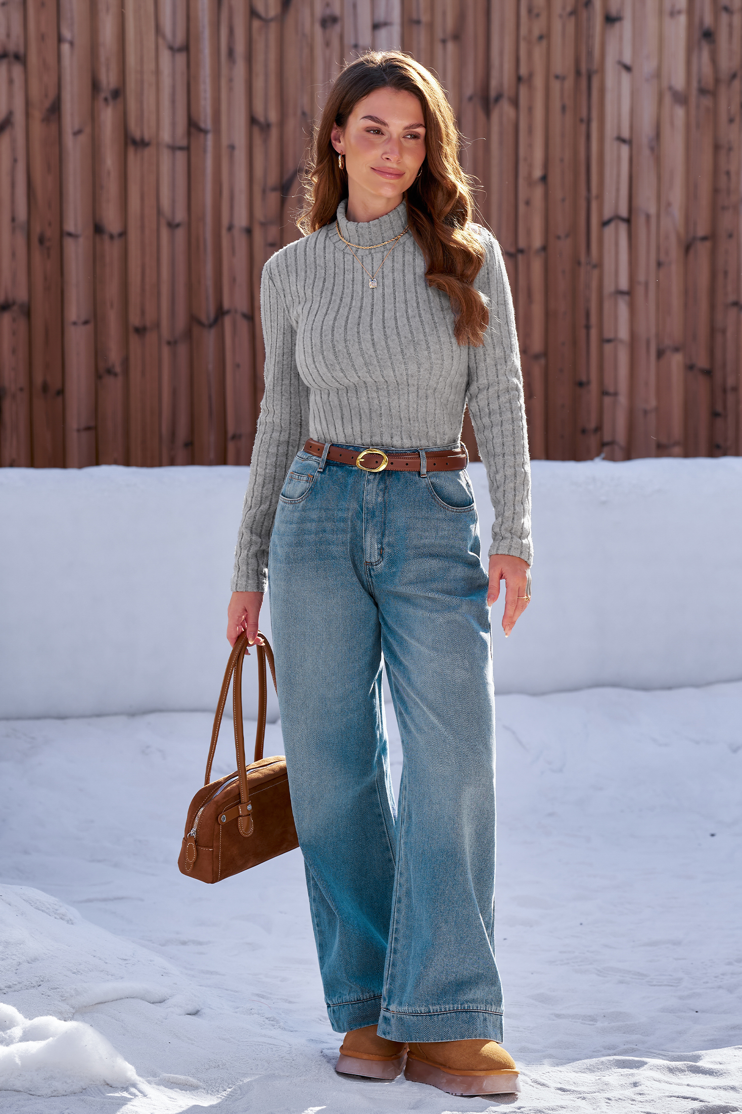 The Friday Night Grey Top is made for easy weekend vibes! The high neckline, long sleeves, and ribbed texture make it a cozy pick for any weekend plans.