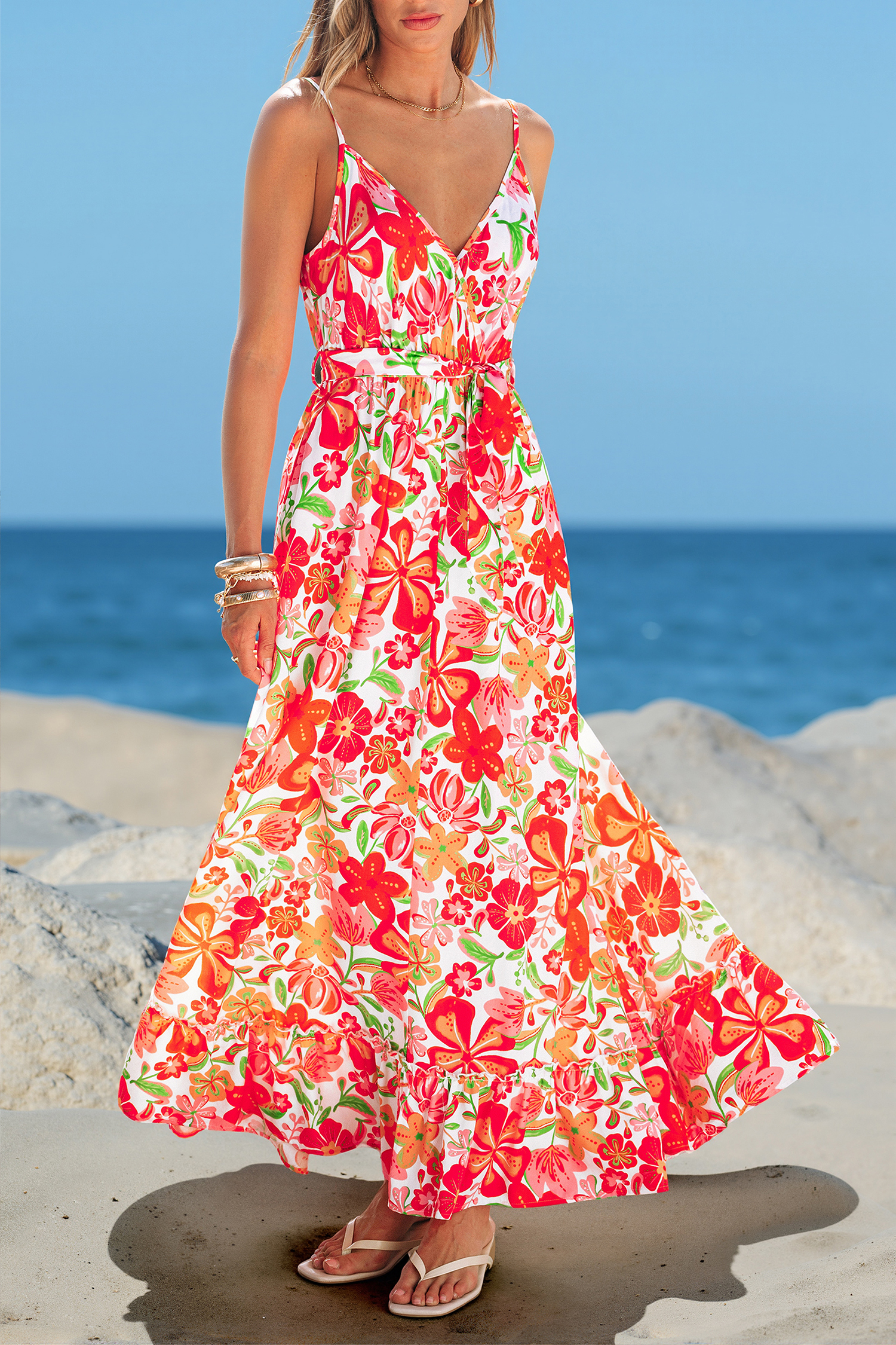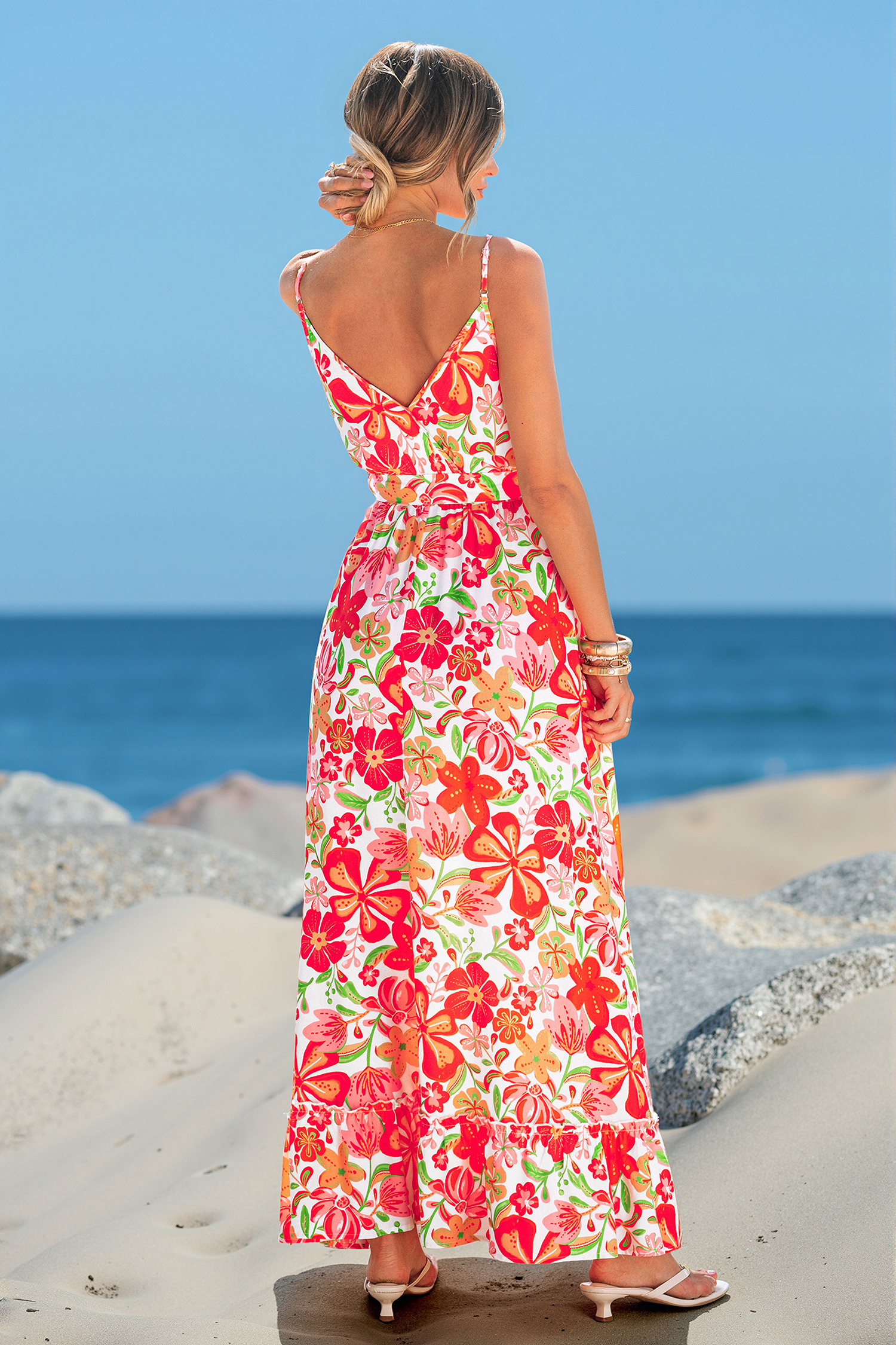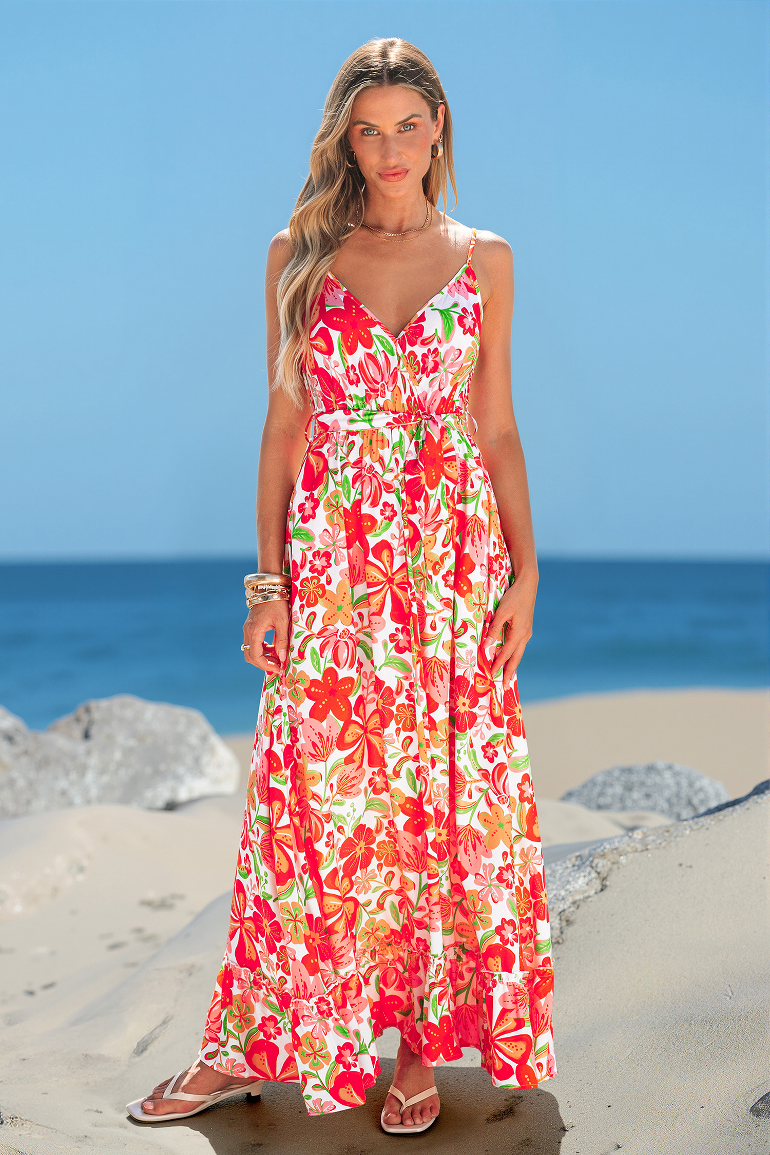 Blue & White Ornate Halterneck Sleeveless Midi Dress