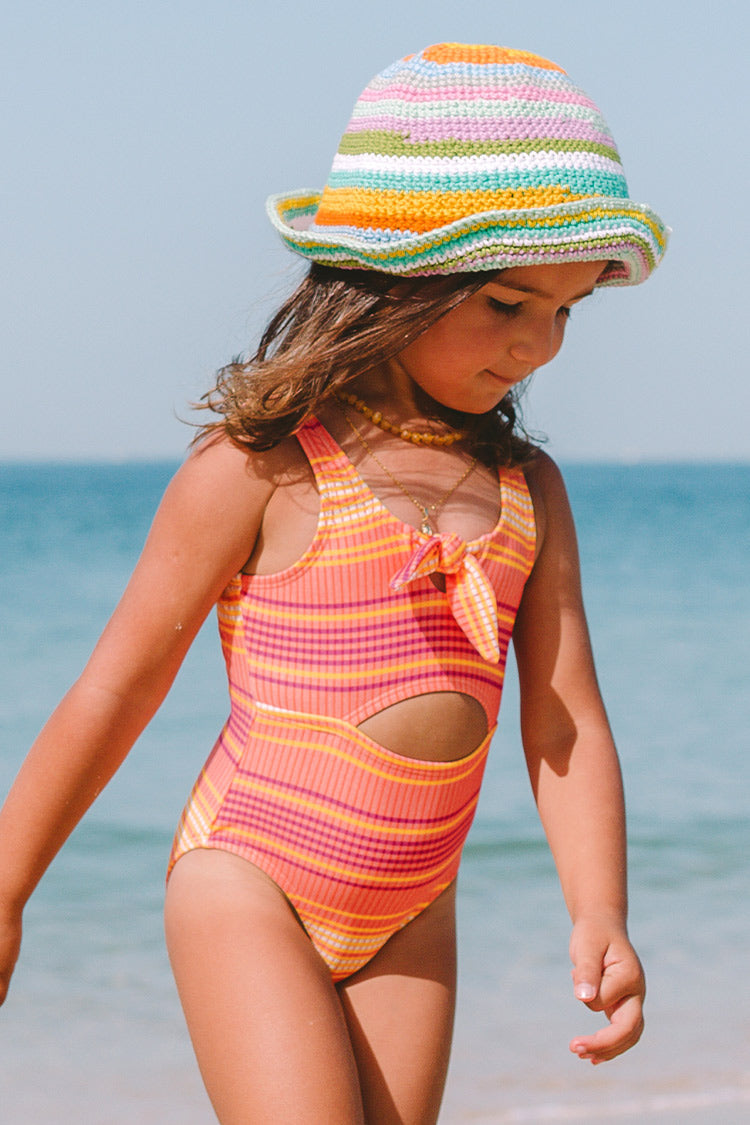 Girls Stripe Bunny Tie Front Sports One Piece Swimsuit