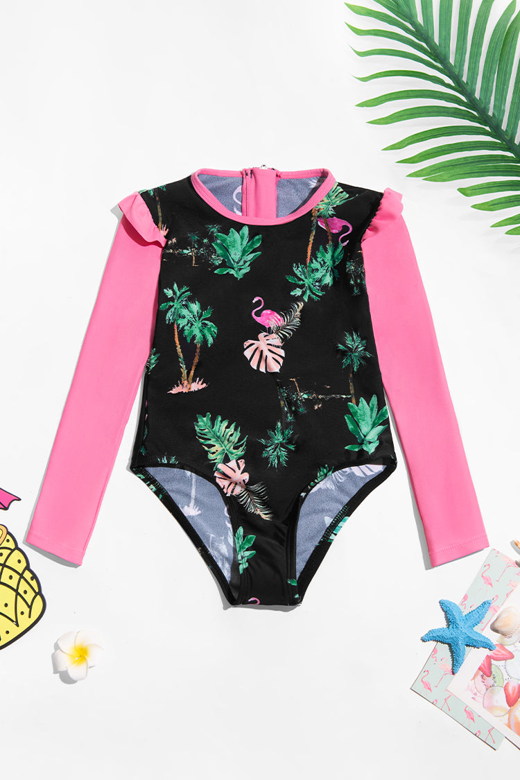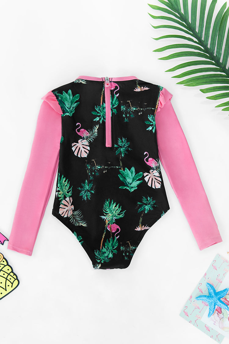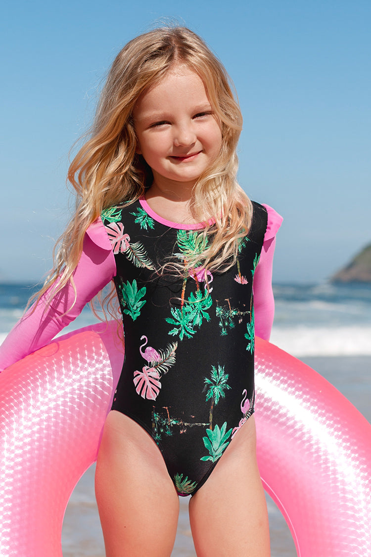 Girls Tropical Ruffle Rashguard One Piece Swimsuit