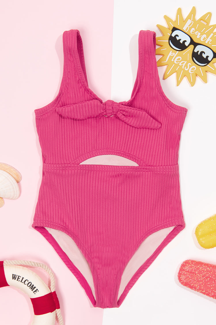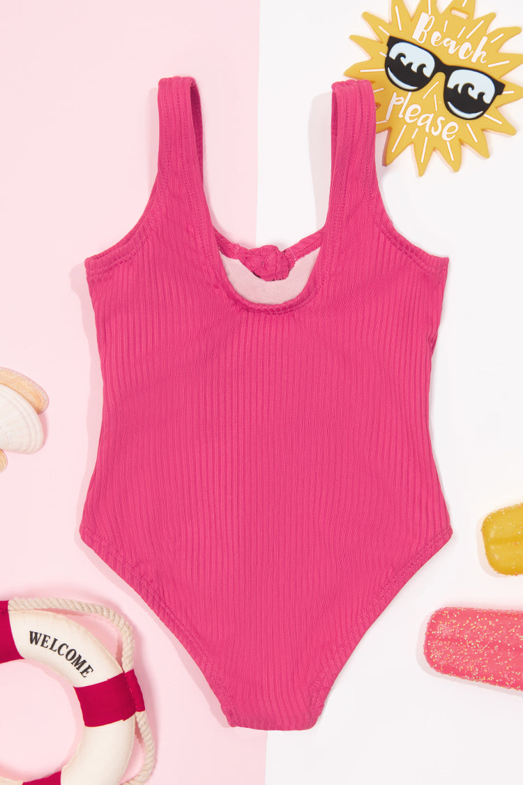 Girls Textured Pink Bunny Tie Front Sports One Piece Swimsuit