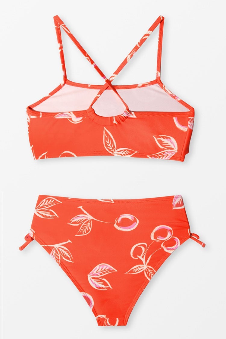 Girls Red Cherries Flounce Midkini and Tie Side Tankini Set