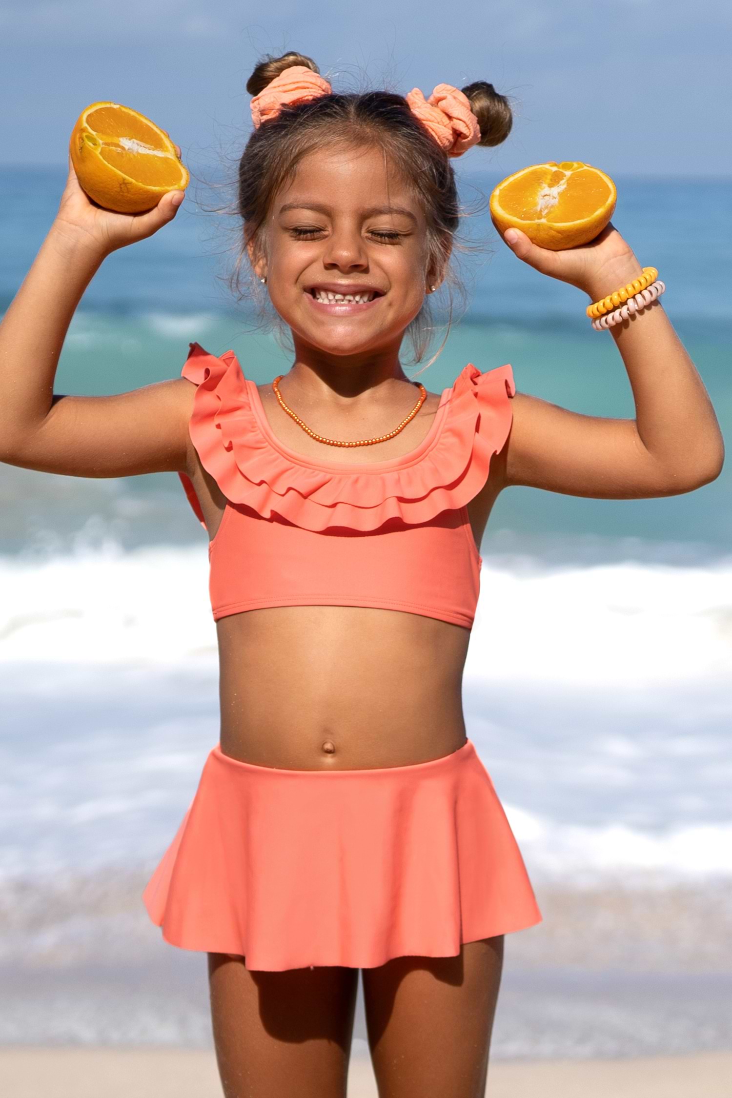 Girls Pink Ruffled Cami Top & Skirt Bikini Set