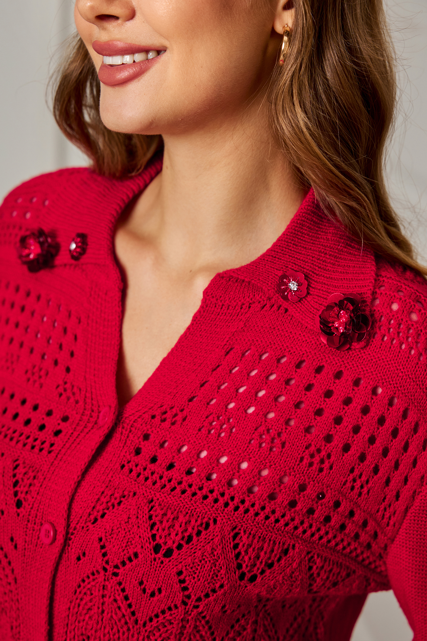The Gleaming Rubies Red Cardigan is bold, polished, and full of energy! The collared neckline and long sleeves give it a classic, elevated feel.