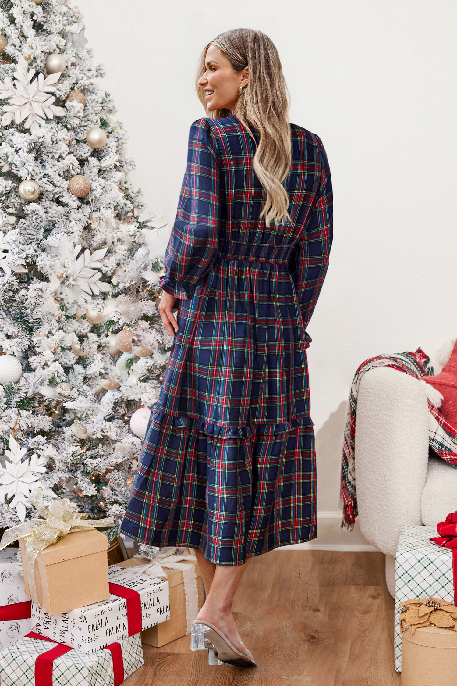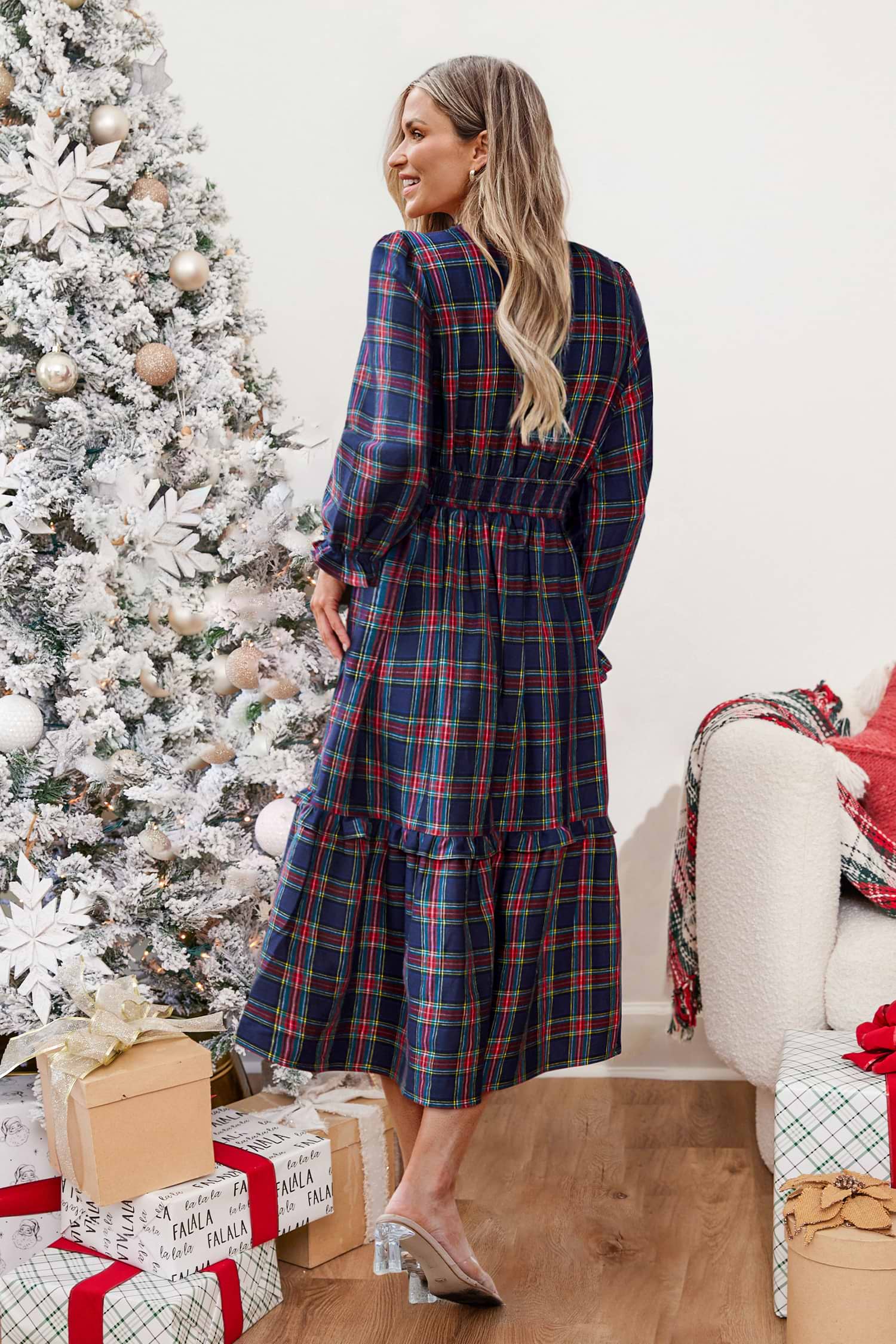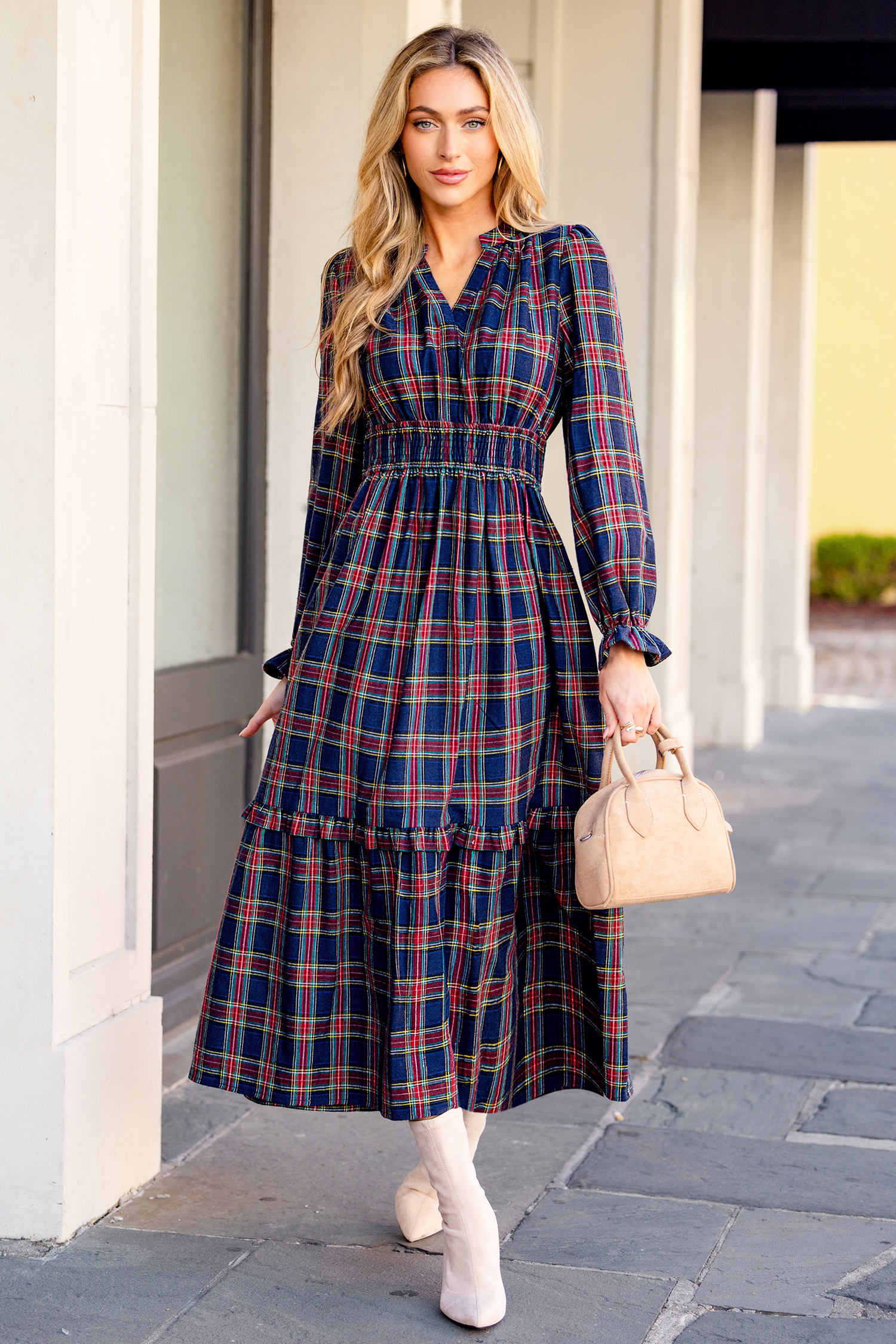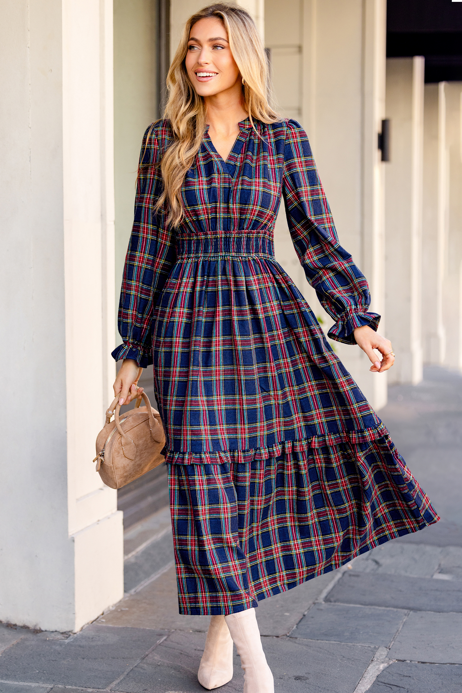 The Going Places Plaid Maxi Dress is all about effortless movement! Its notched neckline, long sleeves, and flowing maxi length make it perfect for days that call for relaxed vibes.