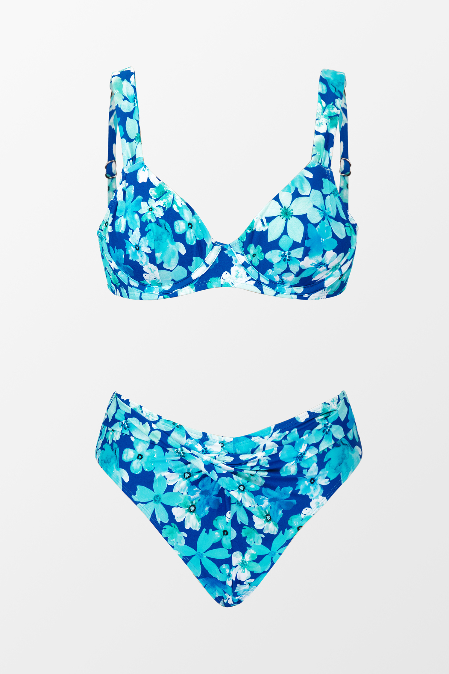 Graphic Cherry Blossoms Underwire Top & Twist Front Bikini Set