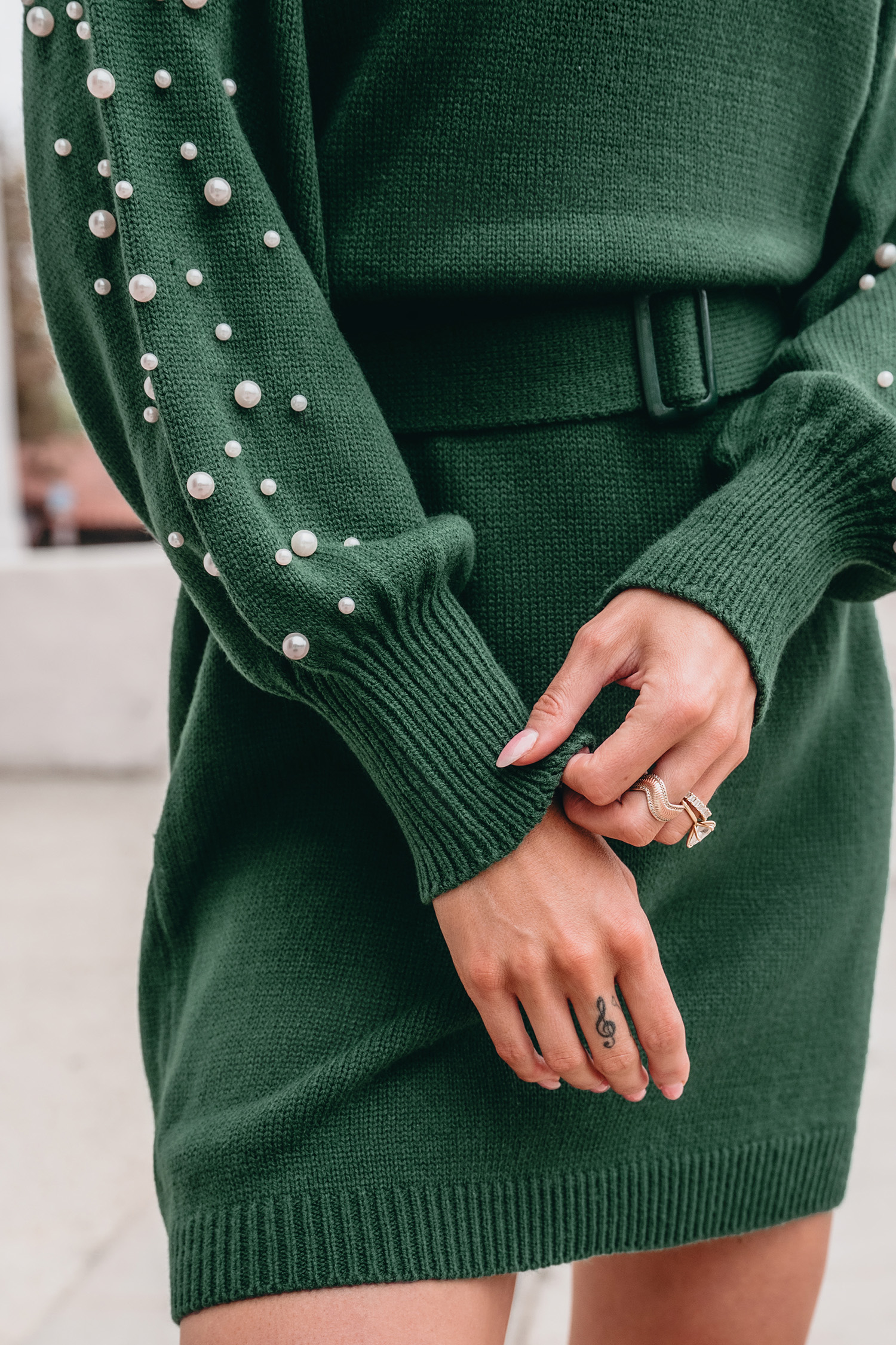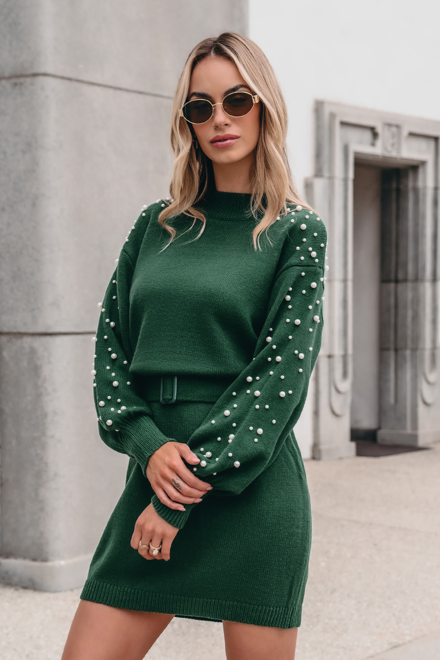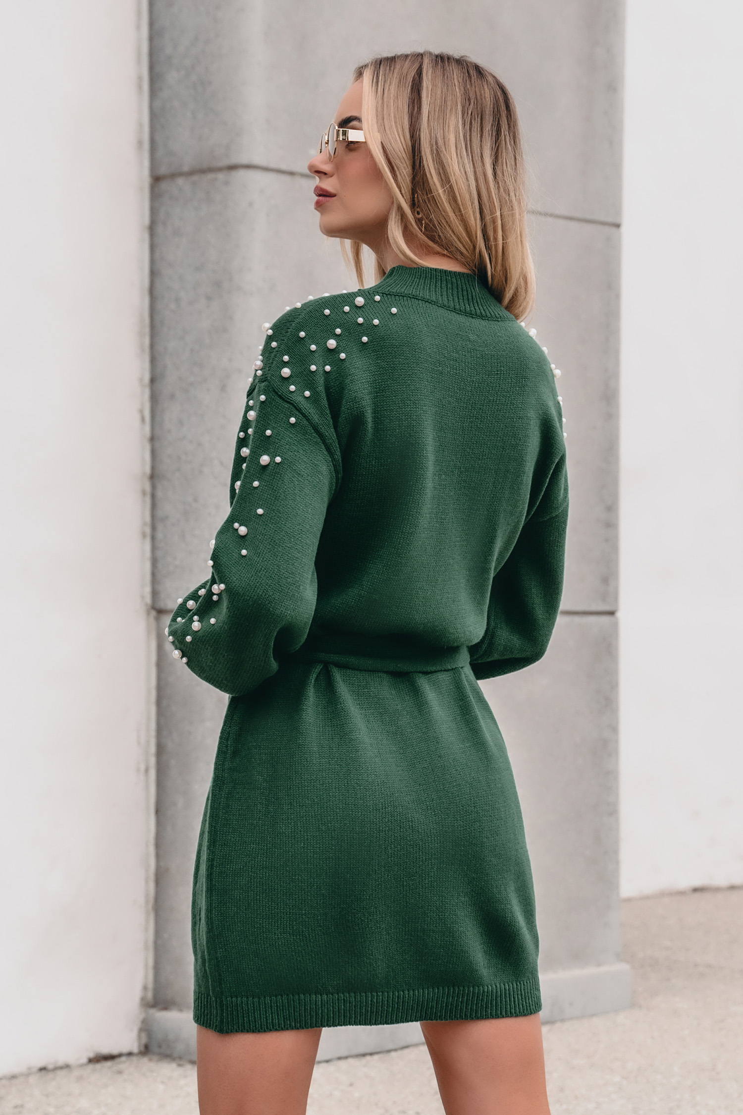 HomeGreen Mockneck Beaded Long Sleeve Jumper Dress