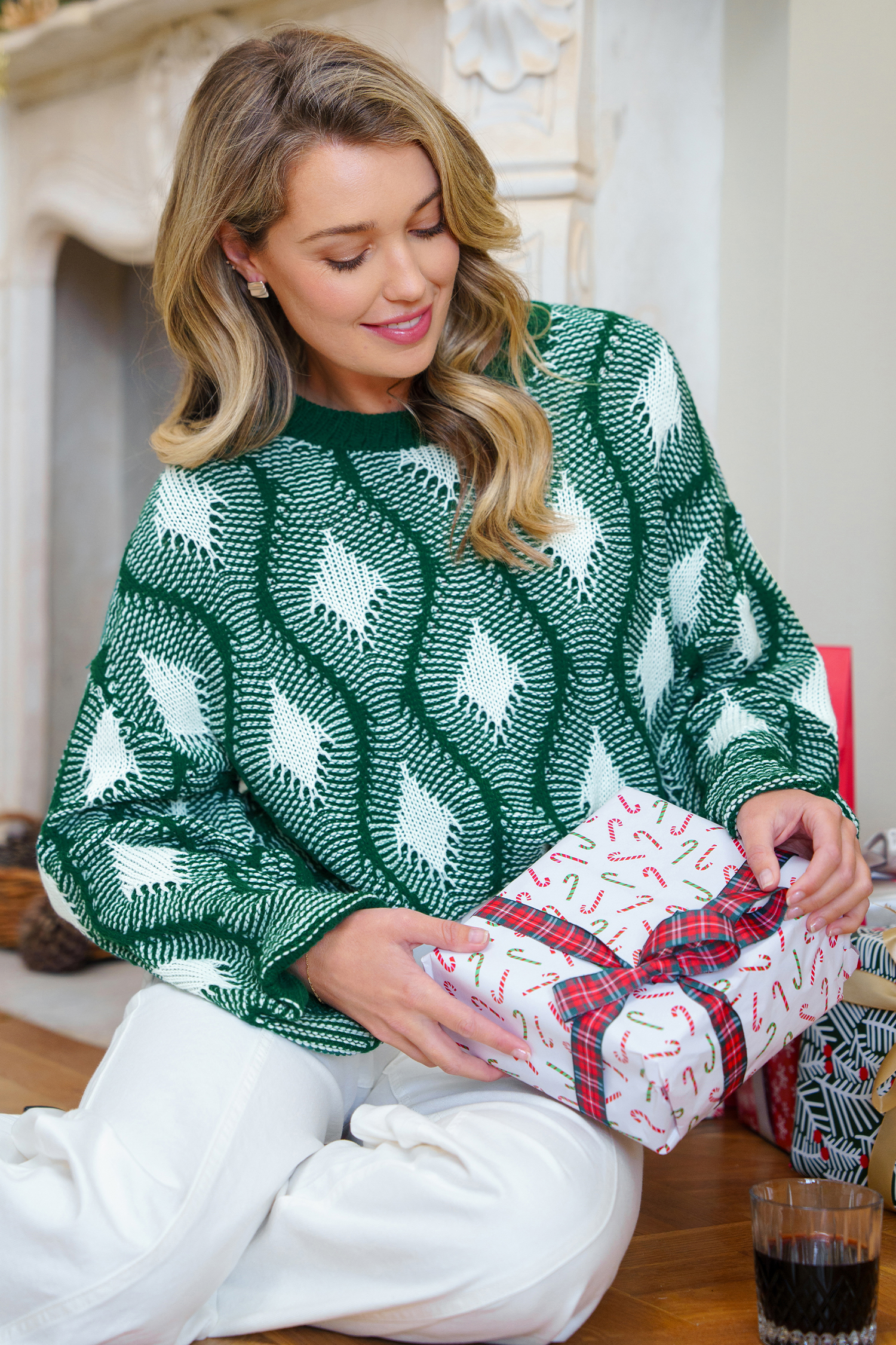 HomeGreen & White Geometric Round Neck Long Sleeve Jumper