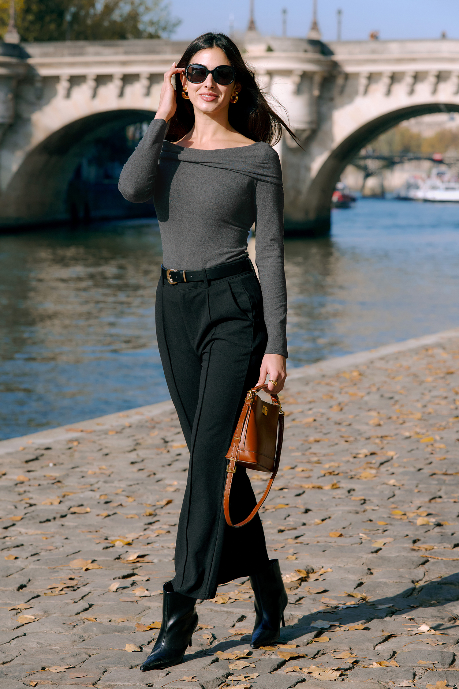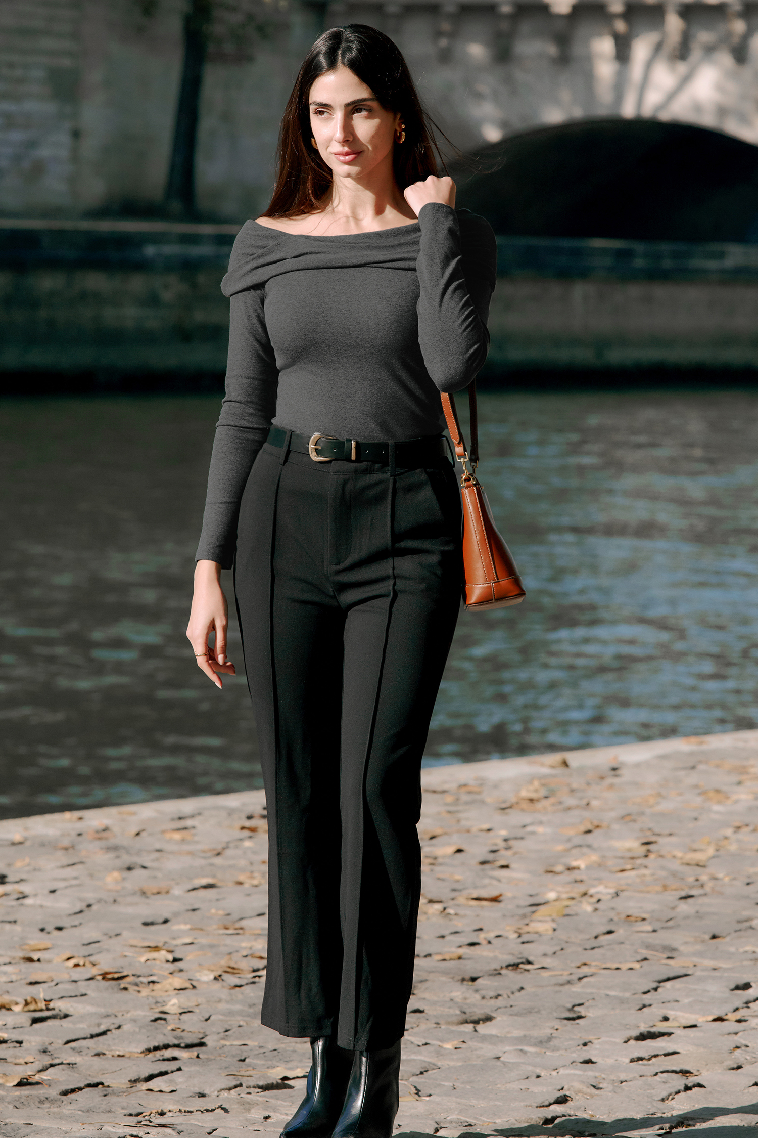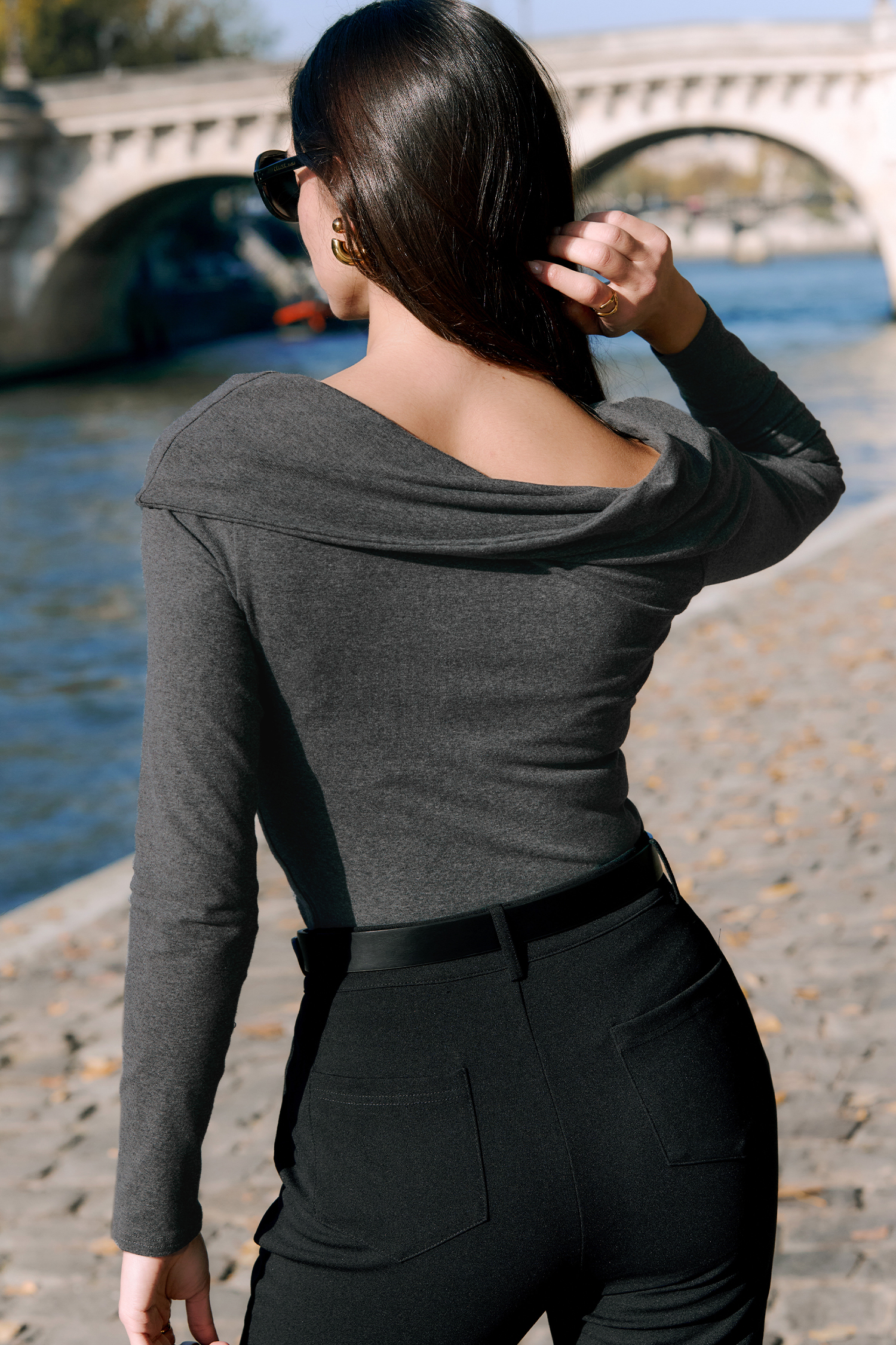 HomeGrey Jersey Off-Shoulder Long Sleeve Top
