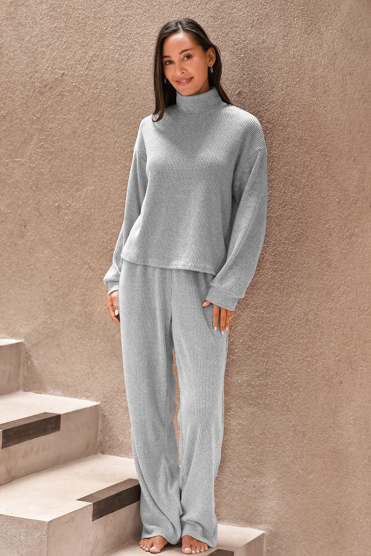 HomeGrey Ribbed Turtleneck Top & Trousers Pajama Set