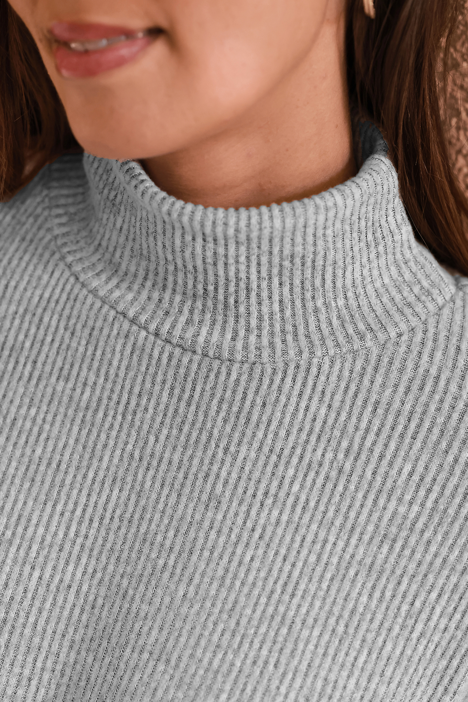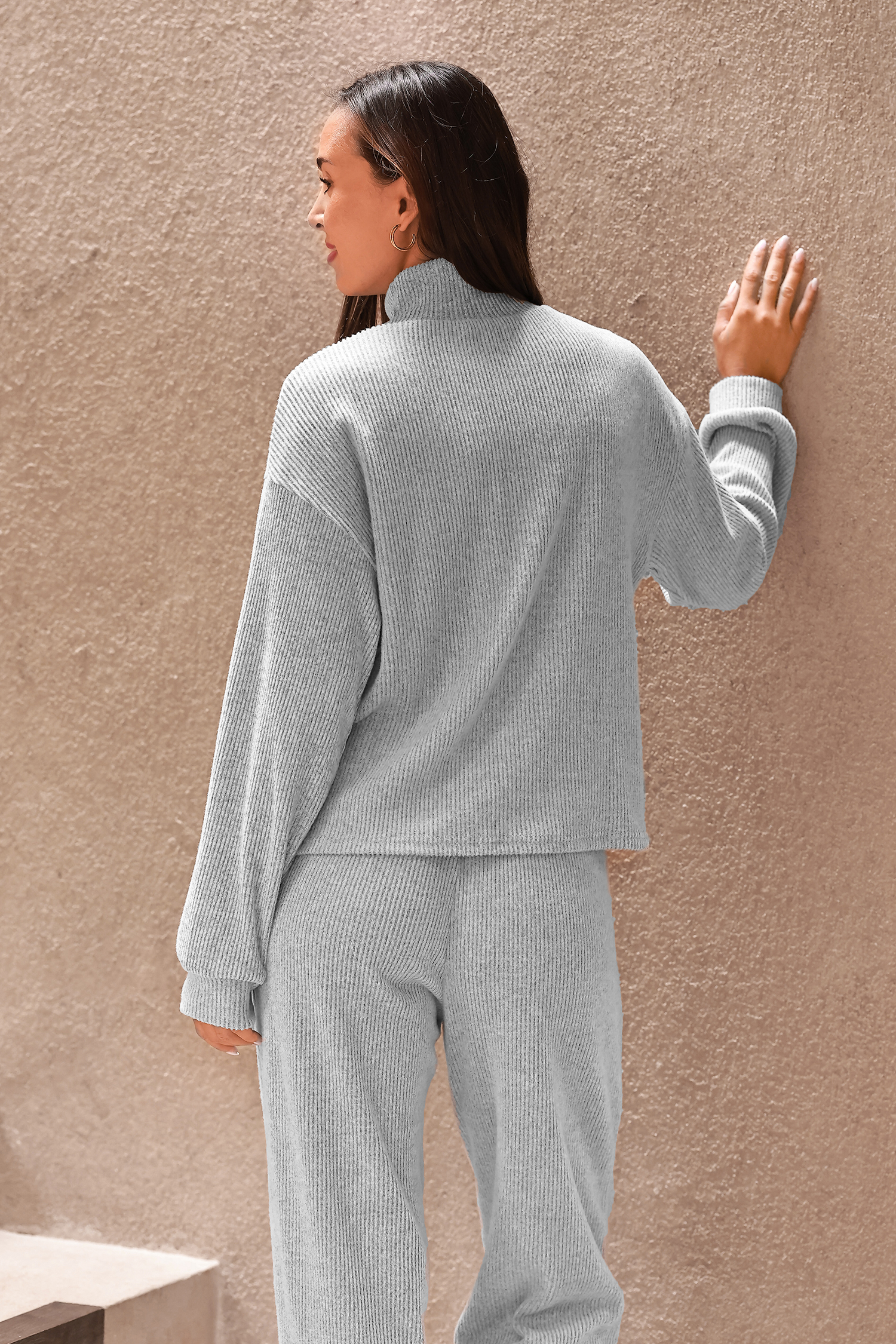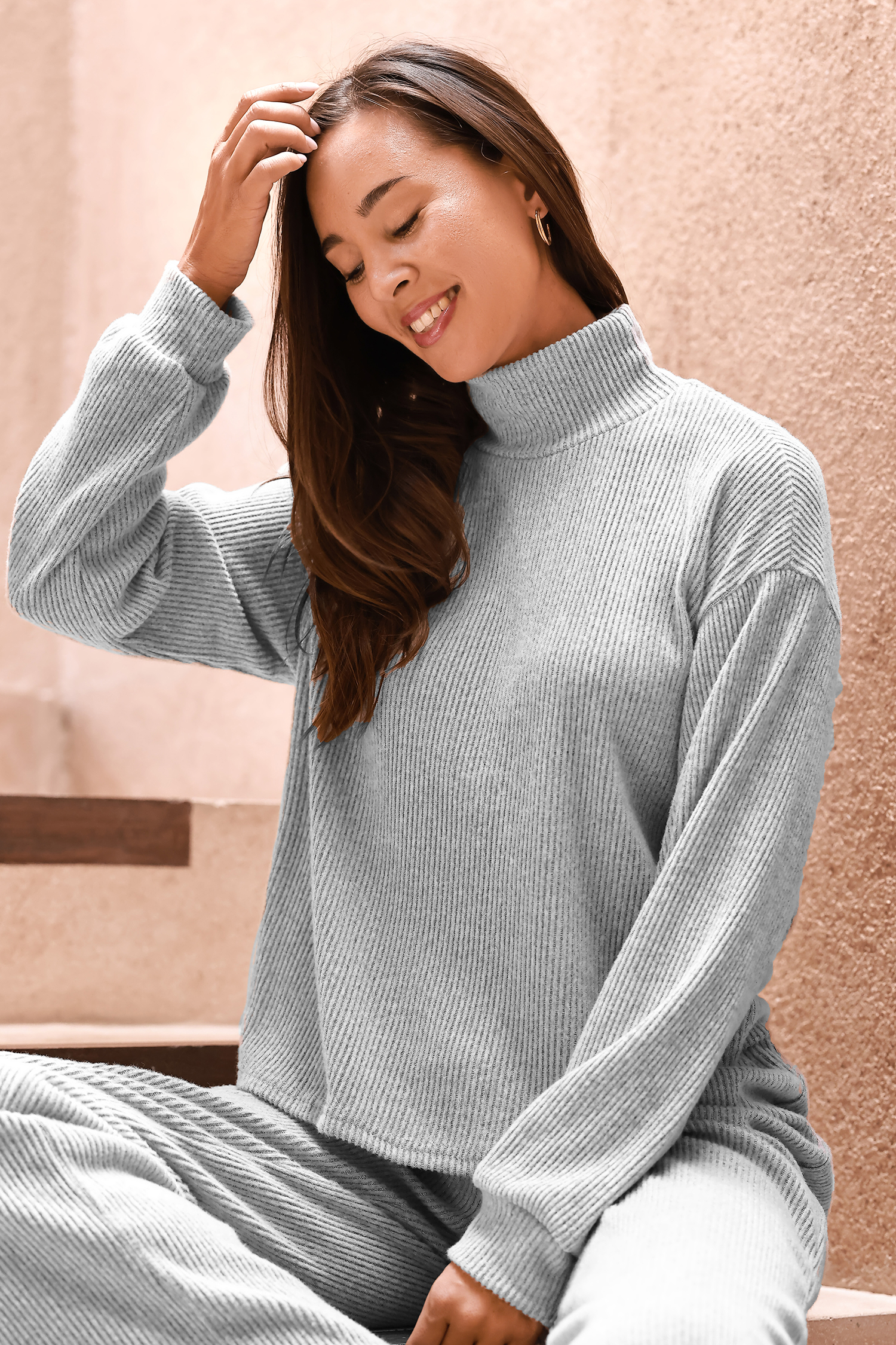 Grey Ribbed Turtleneck Top & Trousers Pajama Set