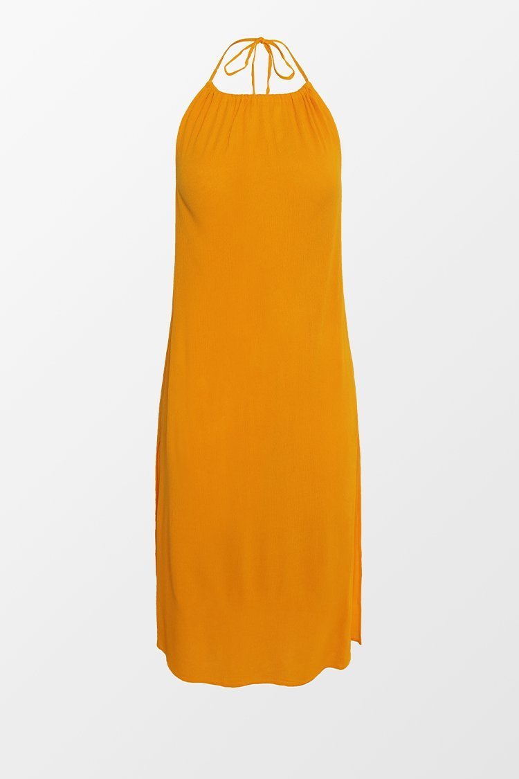 HomeHaleigh Orange Backless Split Tea Length Dress