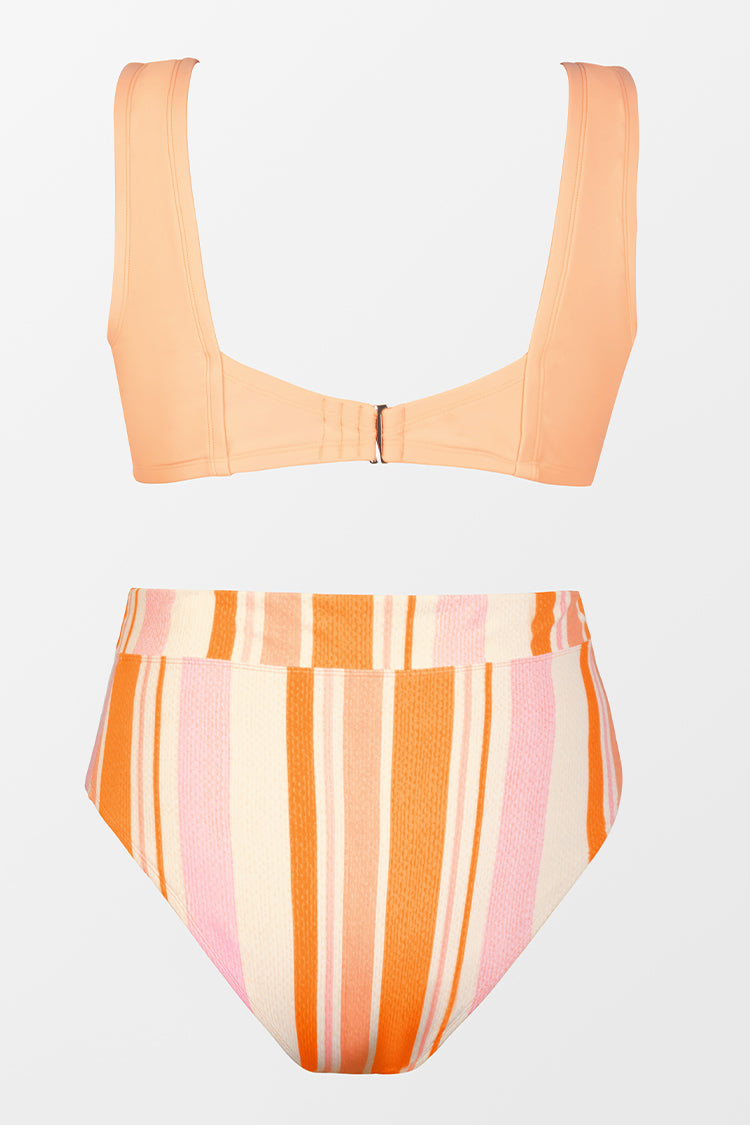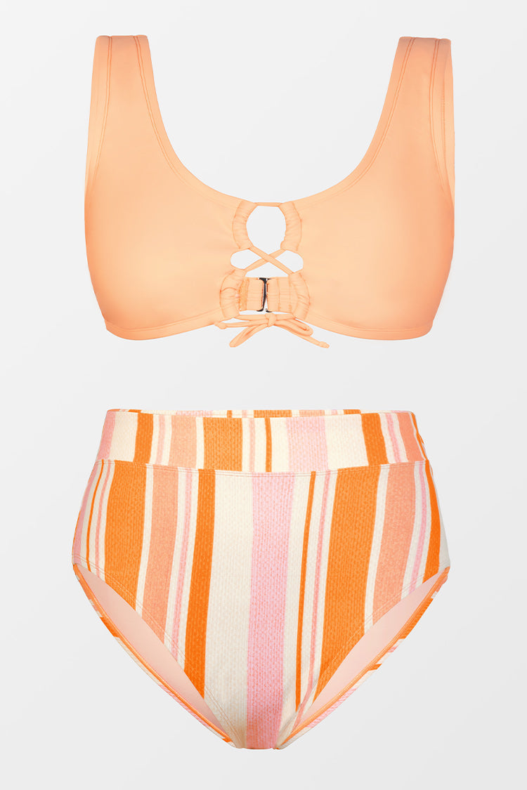 Plus Size Fixed Tie Bralette & High Waist Bikini Swimsuit