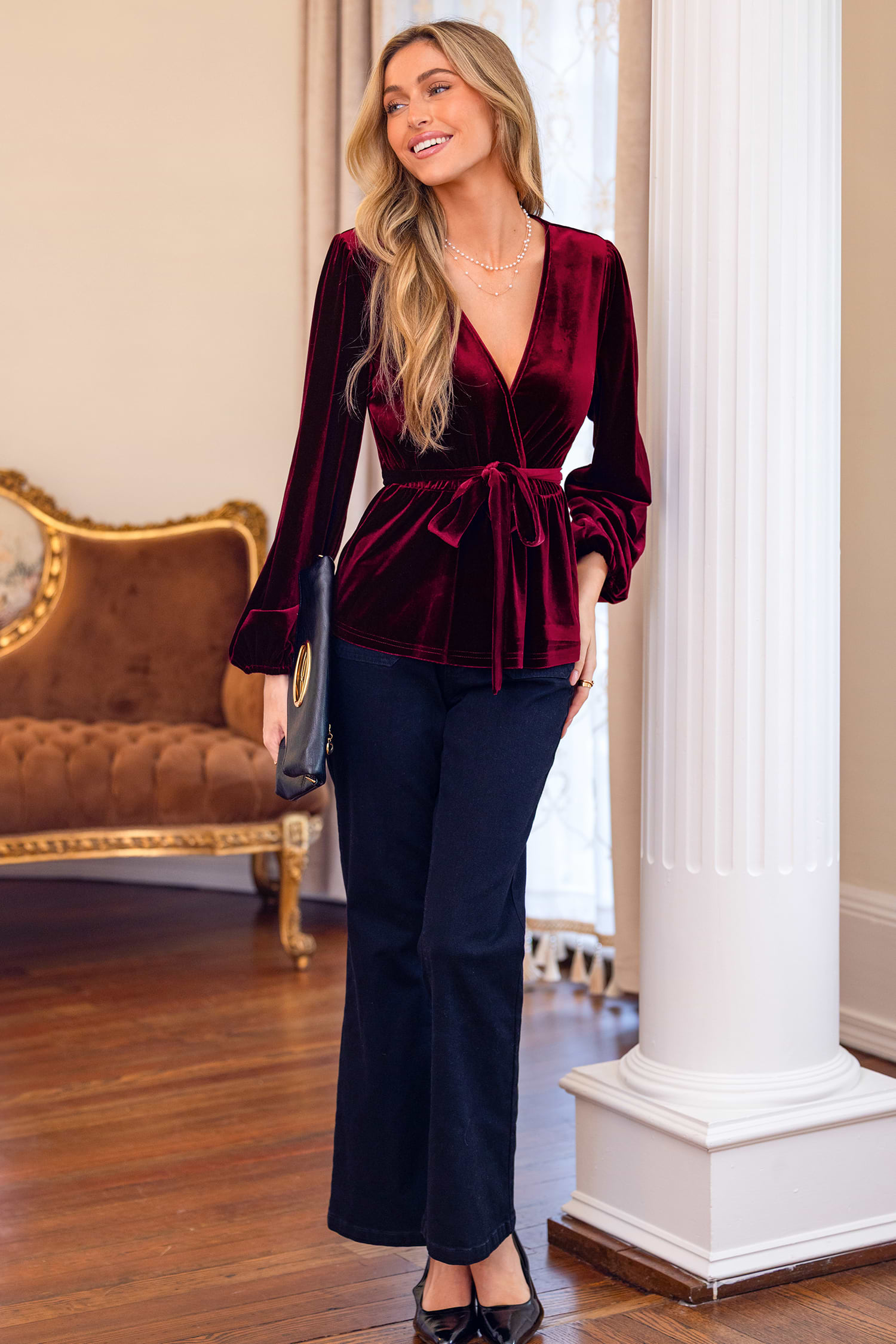The Hearts Aflutter Red Top is made for days that feel bold and fun. The surplice neckline and long sleeves pair with a waist tie for a flirty, figure-flattering fit.