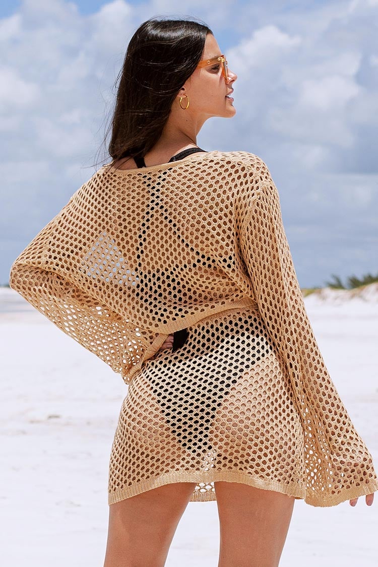 Hermosa Drop Shoulder Sleeve Crochet Coverup Set
