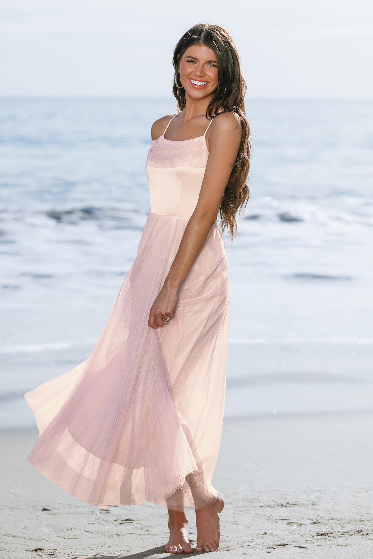 HomeX Madison Beach Wedding Honeymoon Organza Tie Back Maxi Dress
