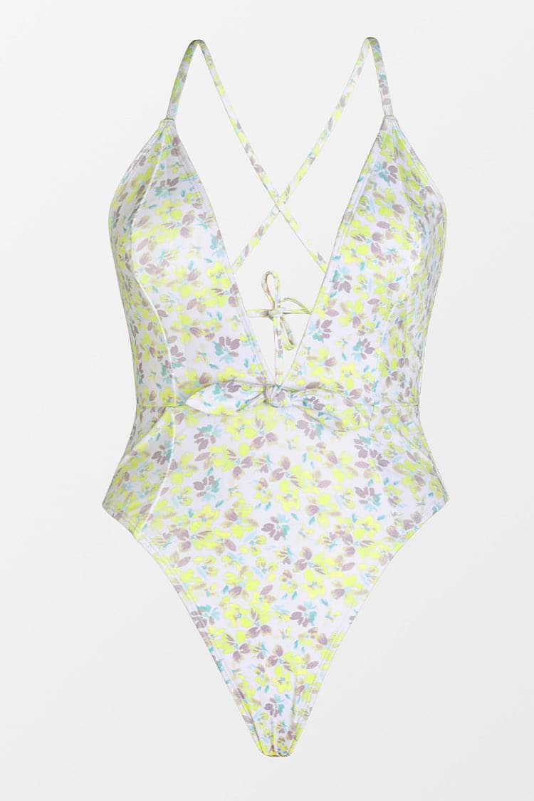 Essential Tie Front Plunge One Piece Swimsuit-Yellow