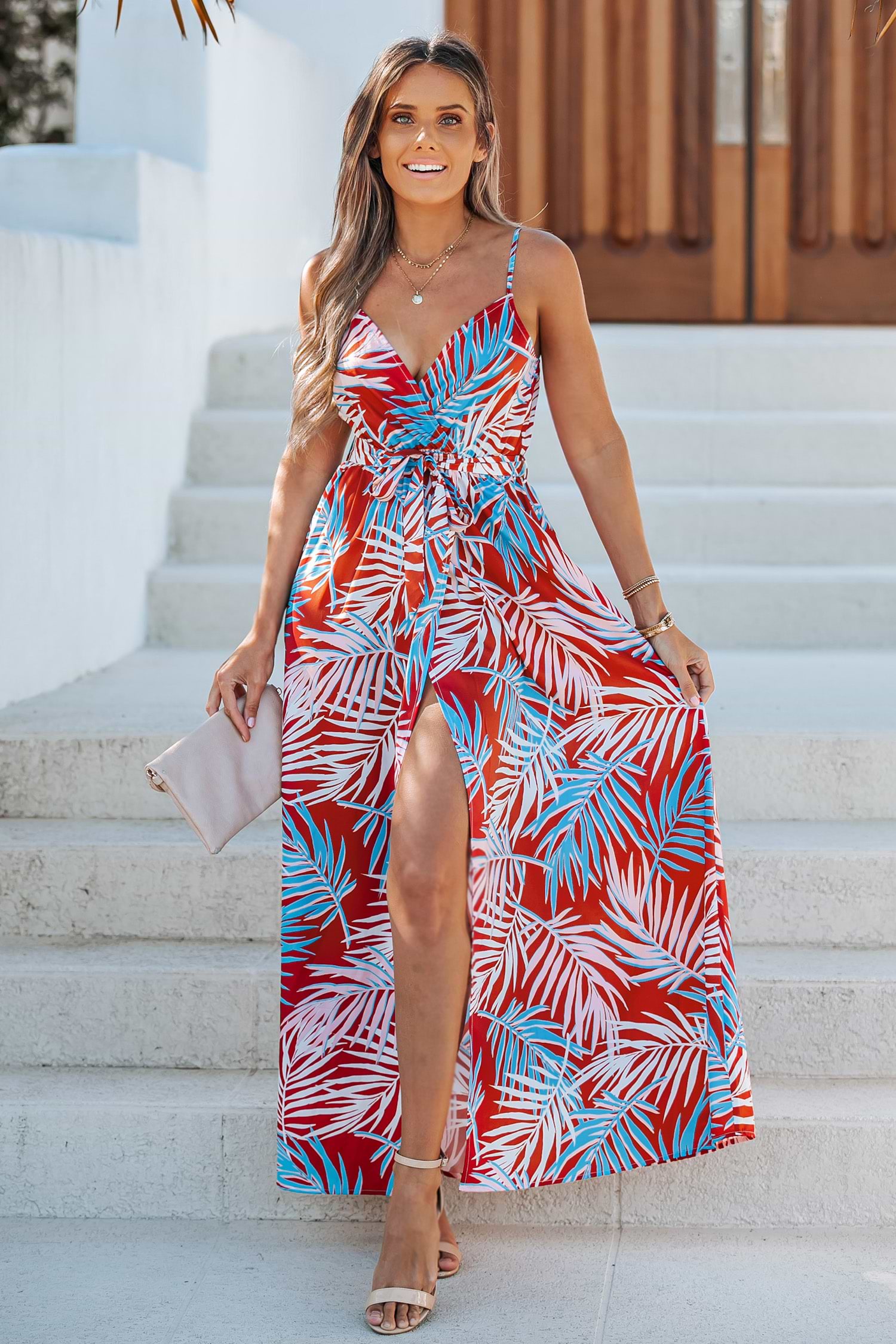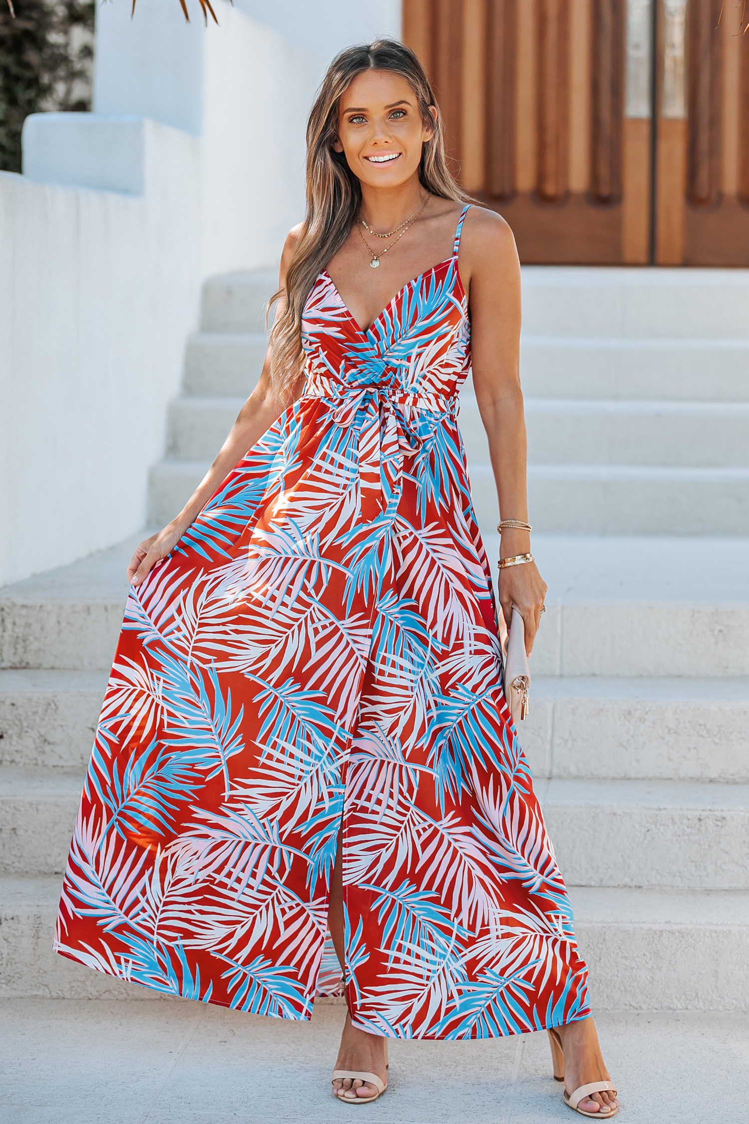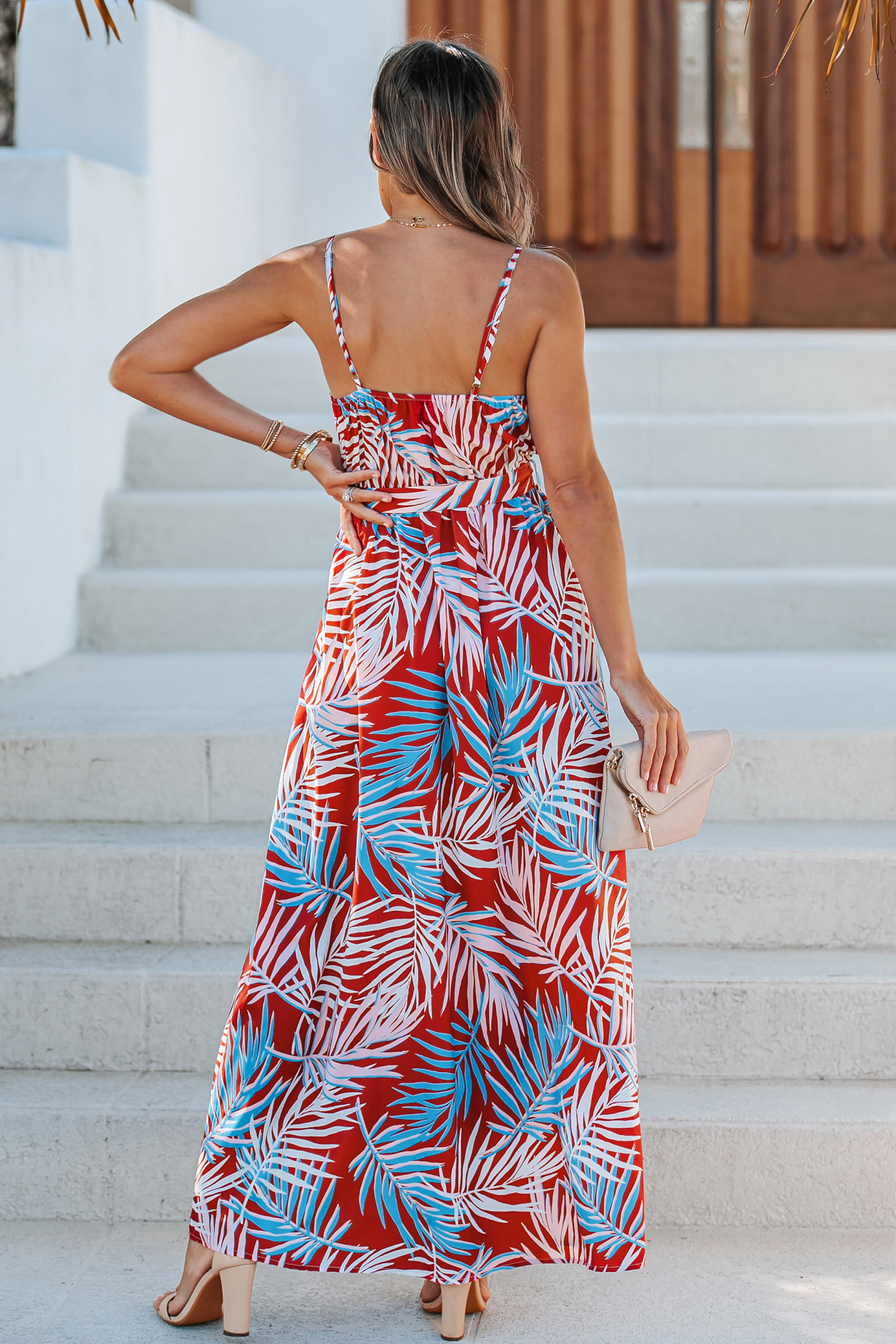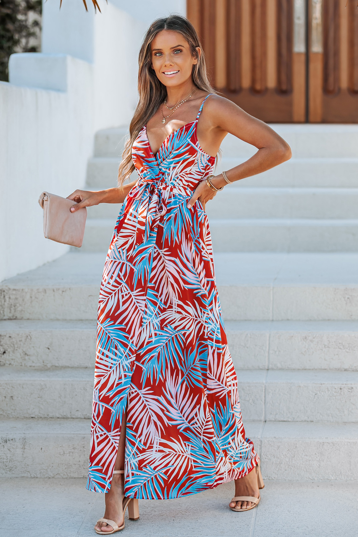 Jazmyn Tropical Leaf Print Maxi Dress