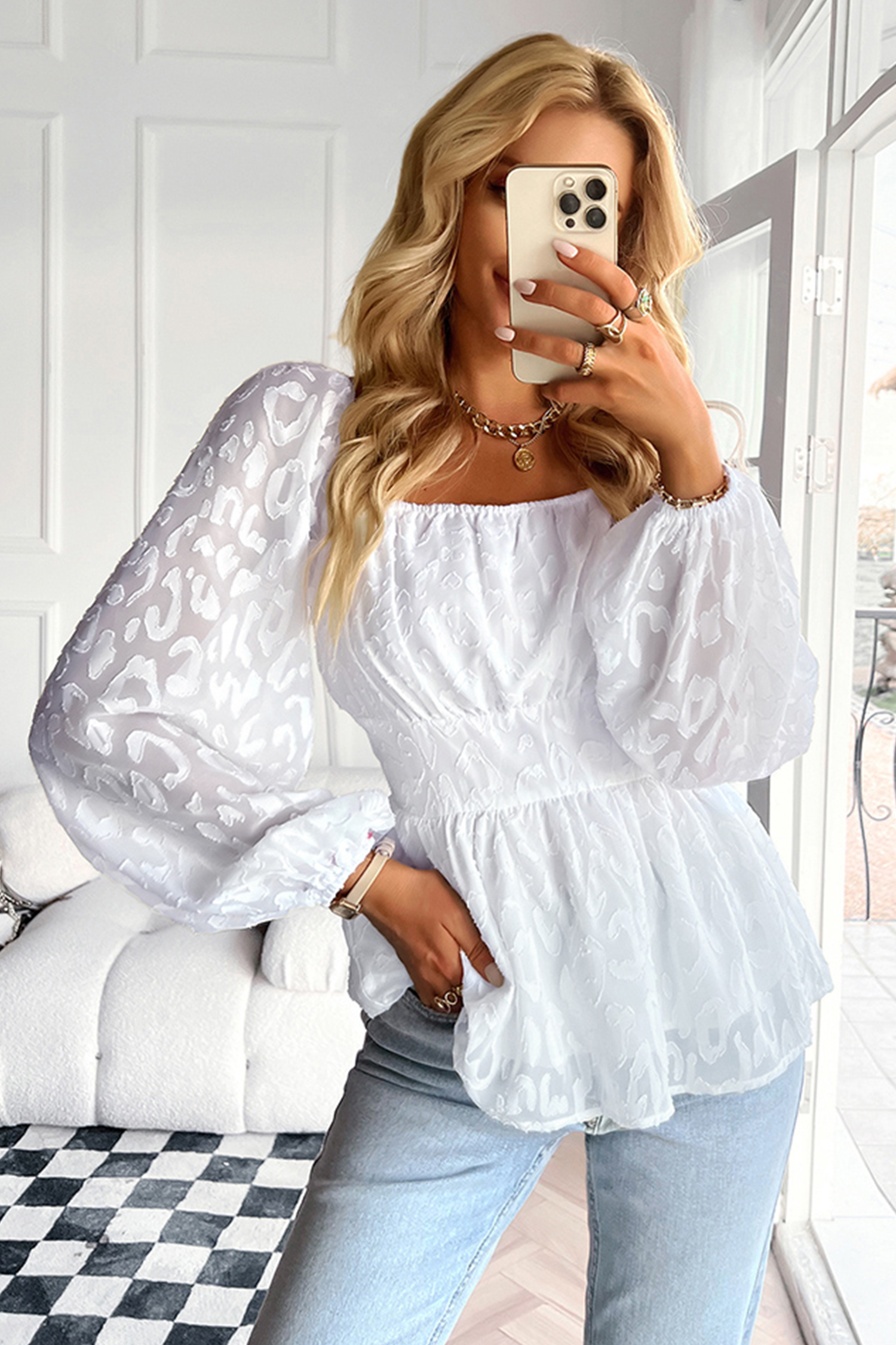 HomeKairi Leopard Lace Flounce Top