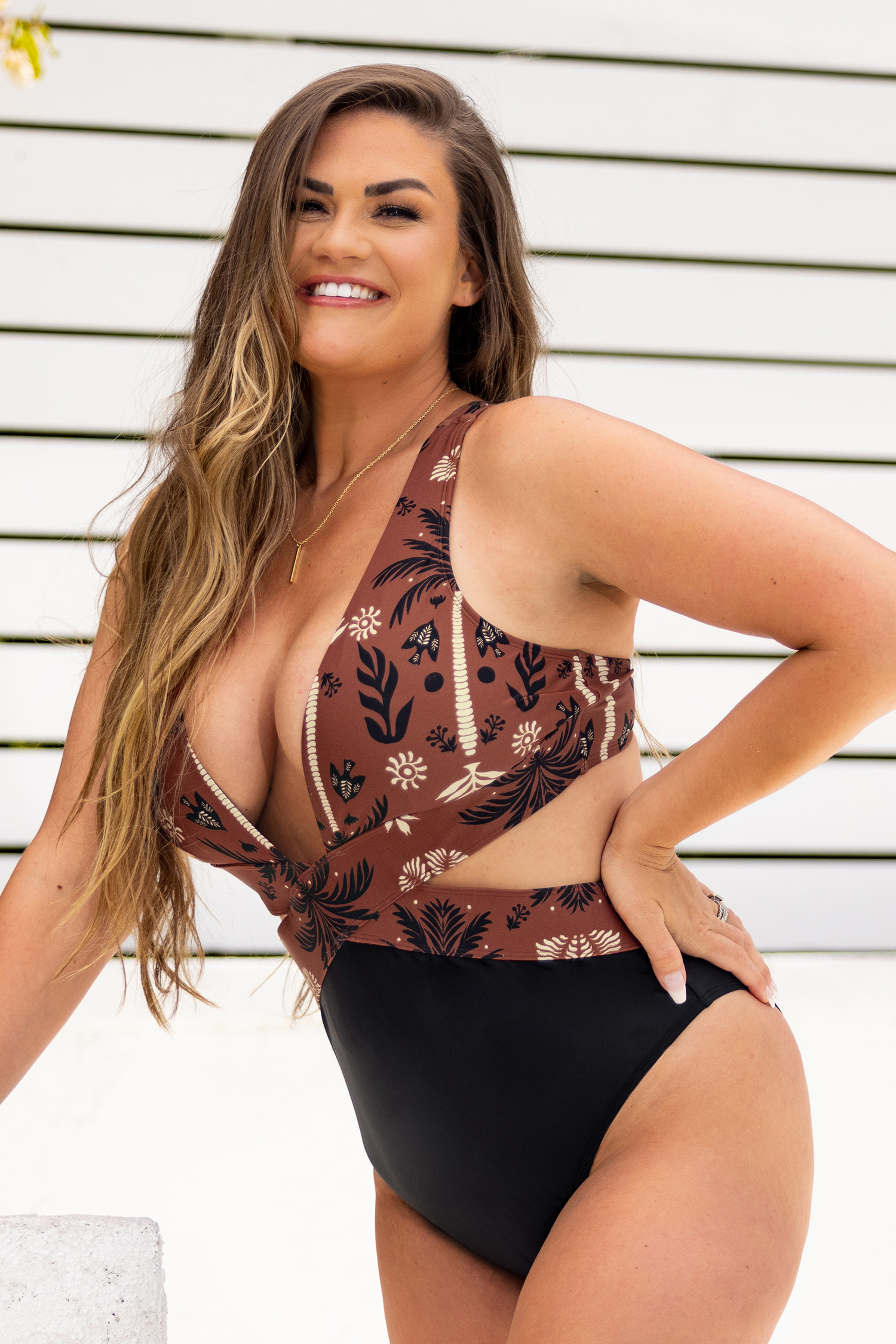 HomeKeep Palm Plunge Cutout Cheeky One Piece Swimsuit