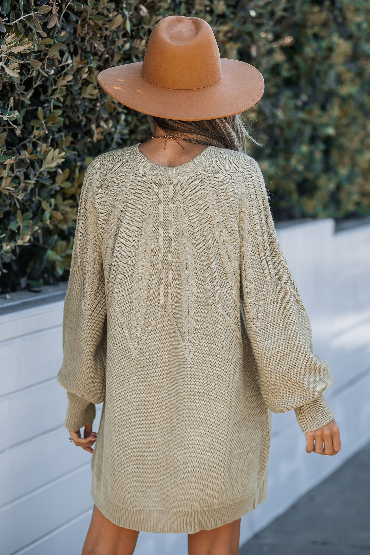 Khaki Round Neck Long Sleeve Mini Jumper Dress
