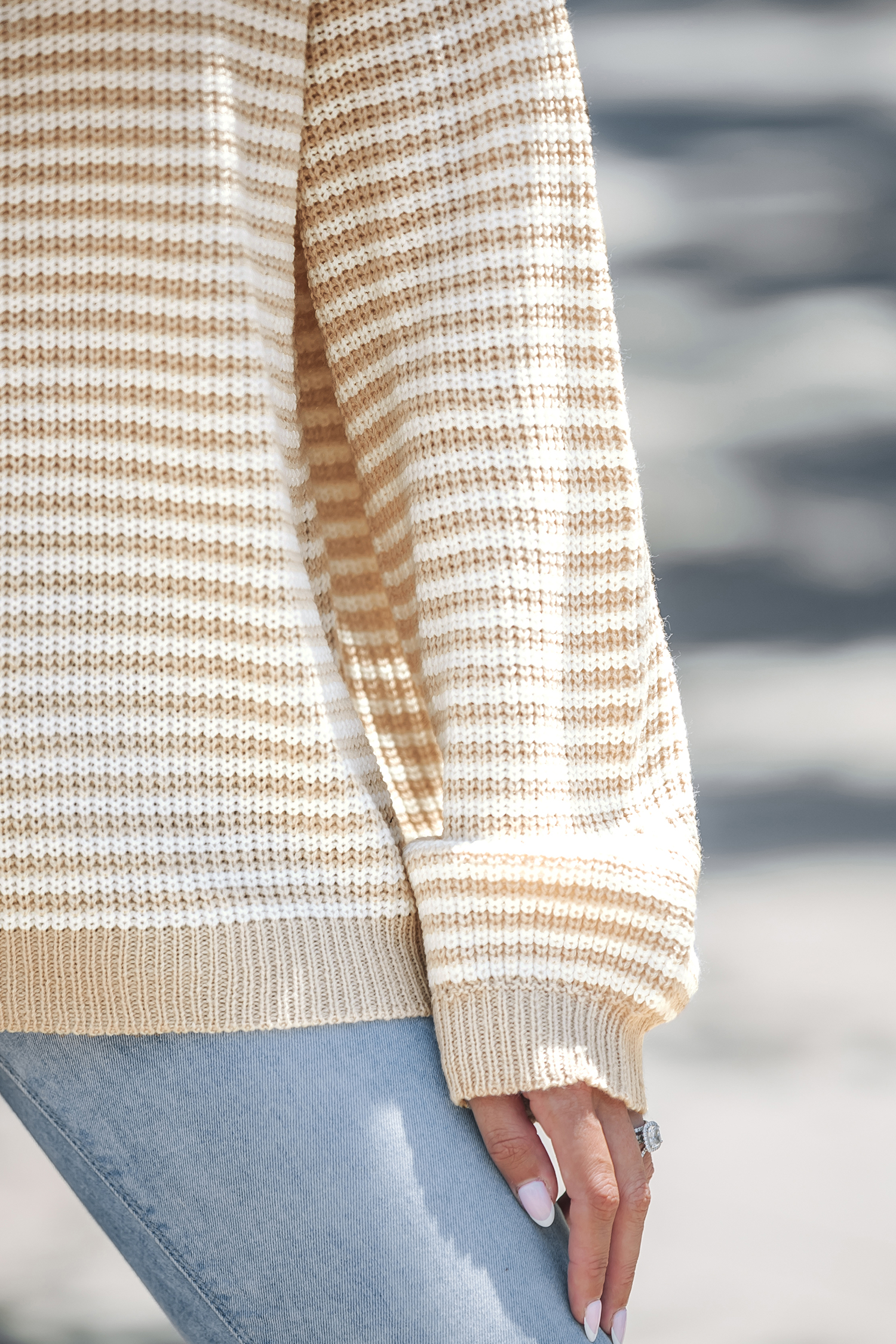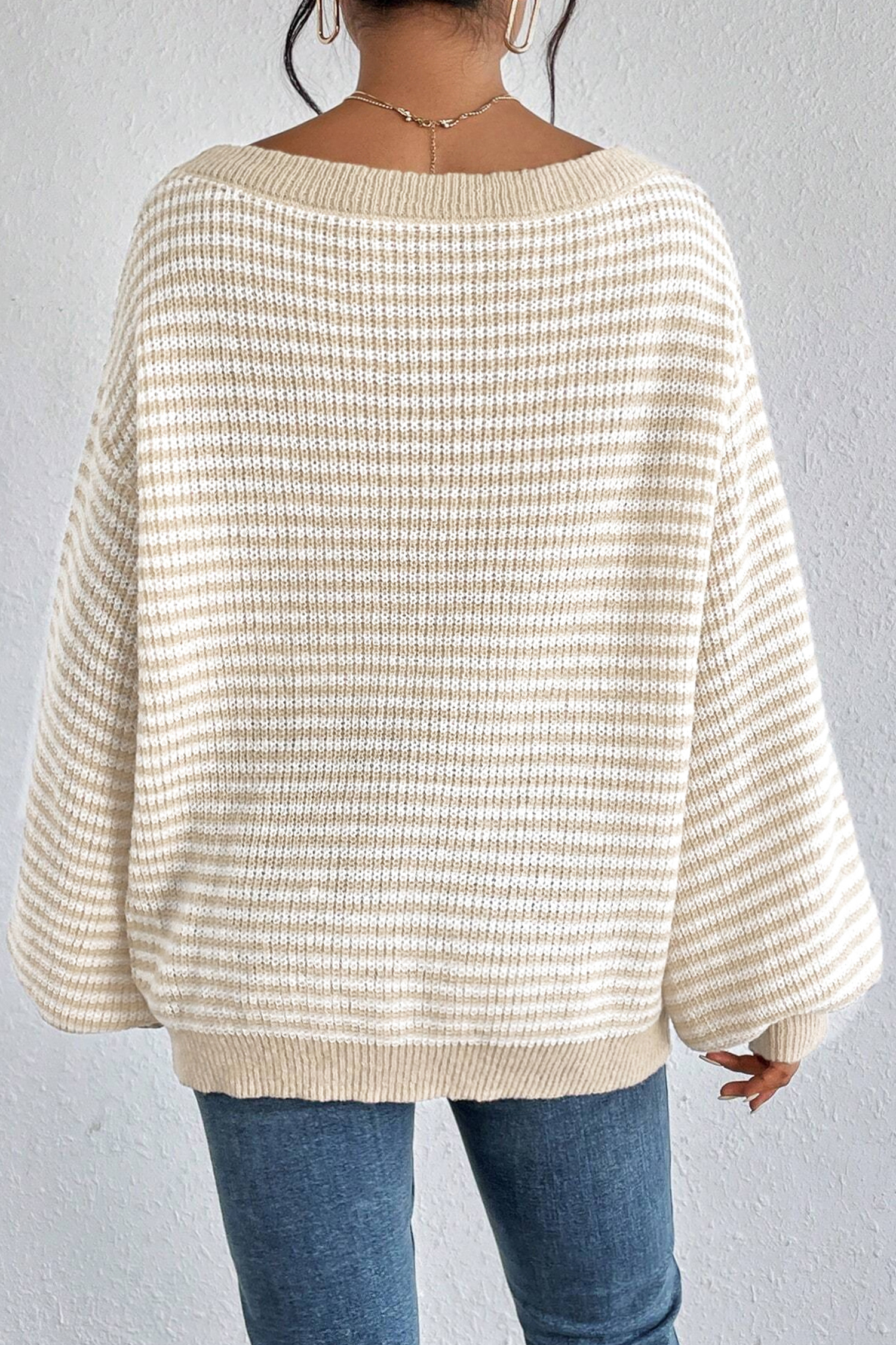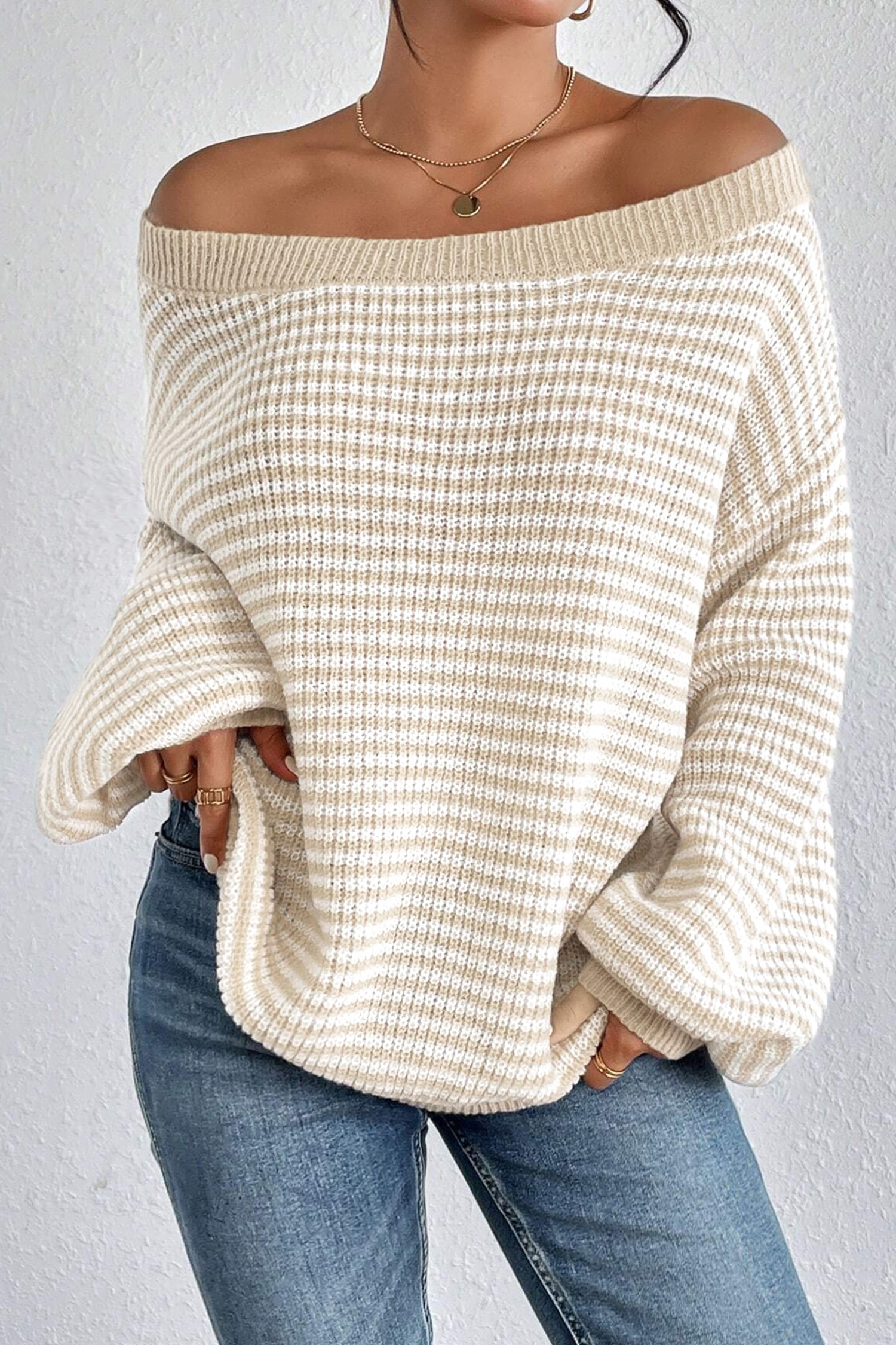Khaki Wide Neck Long Sleeve Jumper