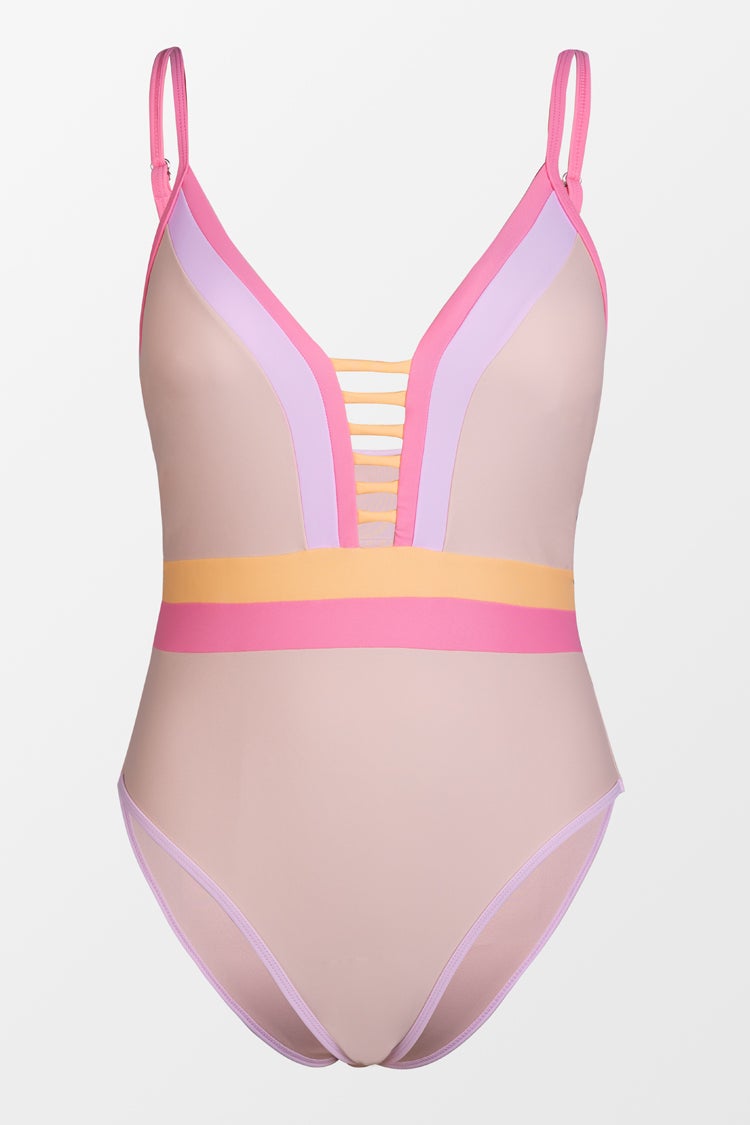 HomeKierra Color Block Strappy One Piece Swimsuit
