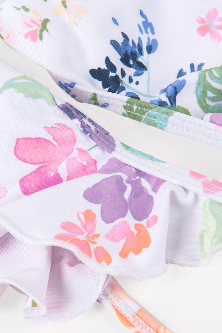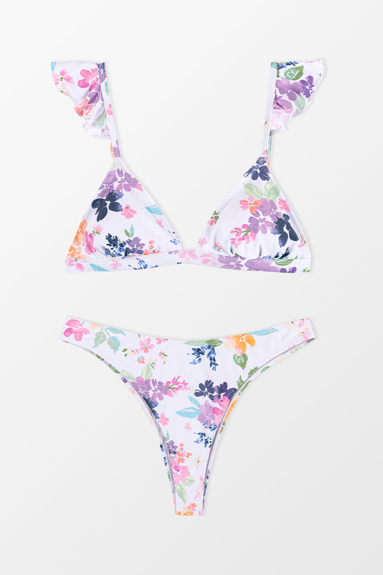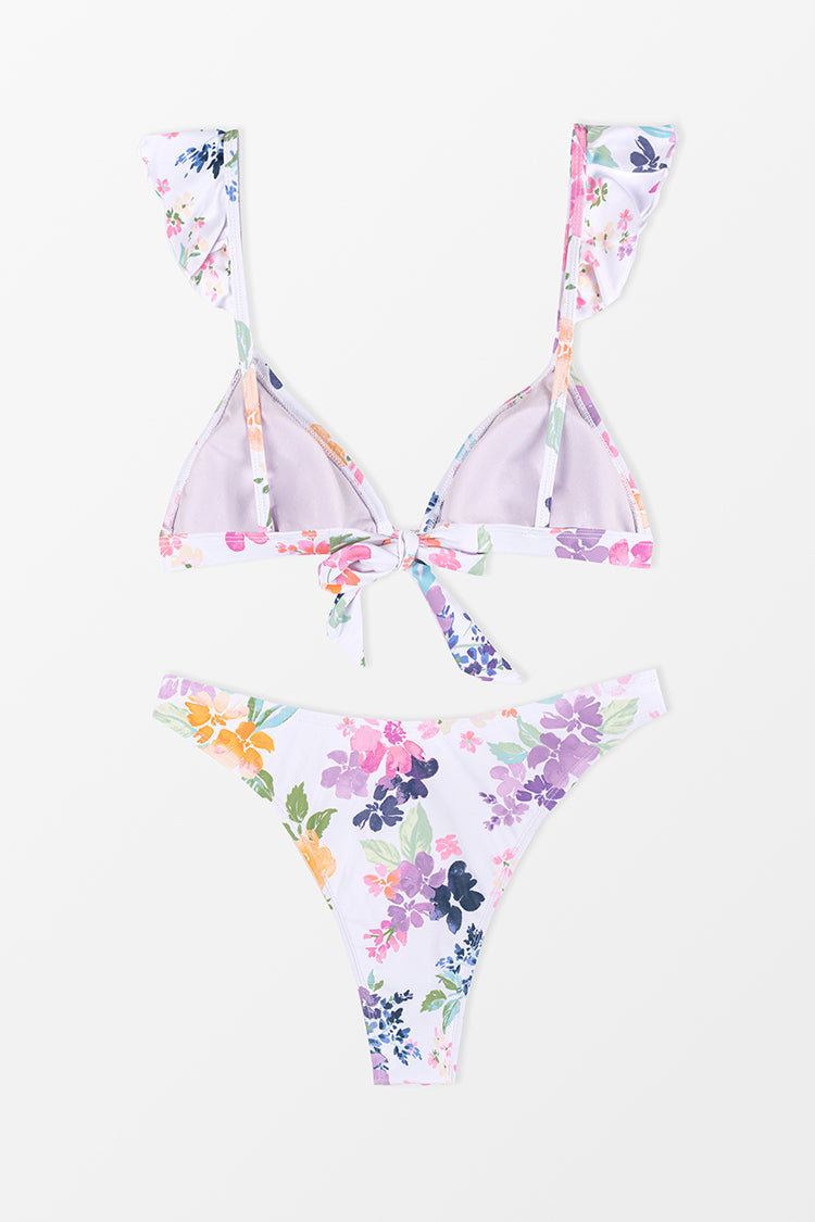 Romantic Garden Ruffle Bow Triangle & Cheeky Hipster Bikini Swimsuit