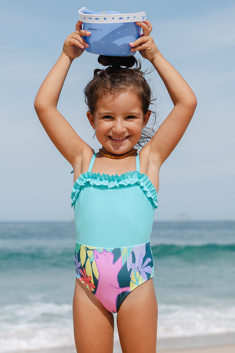 HomeGirls Blue Ruffled One Piece Swimsuit