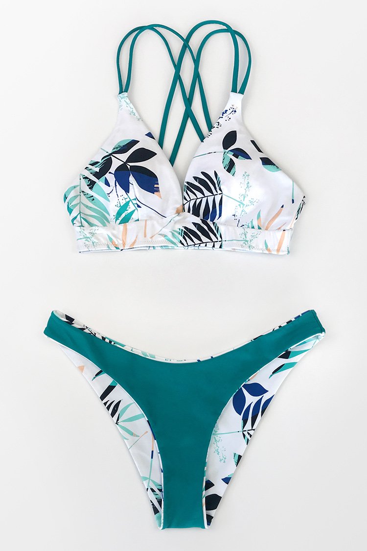 Boho Shell Stitch Halter Bikini Top & Cheeky Bottoms Set