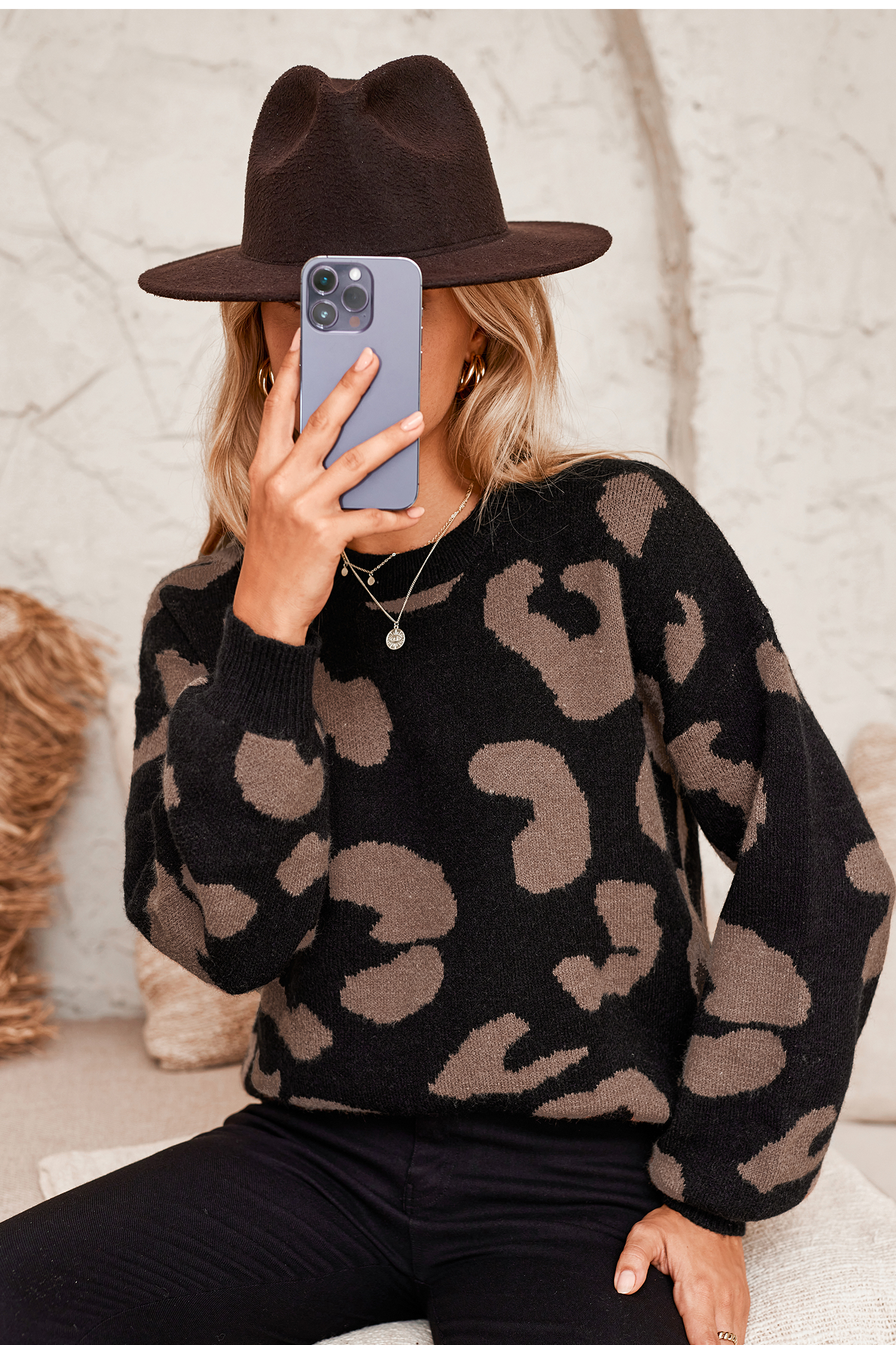 HomeLeopard Print Drop Sleeve Jumper