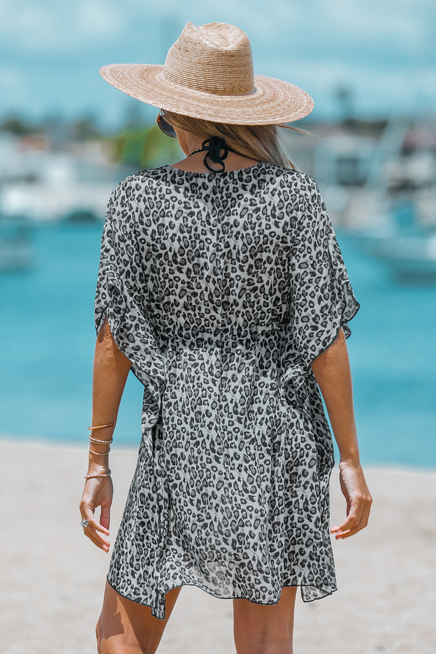 Leopard Print Tie Front Chiffon Cover-Up Dress