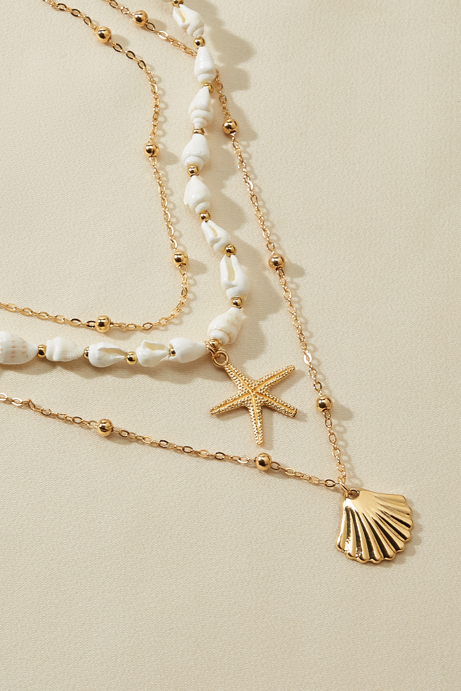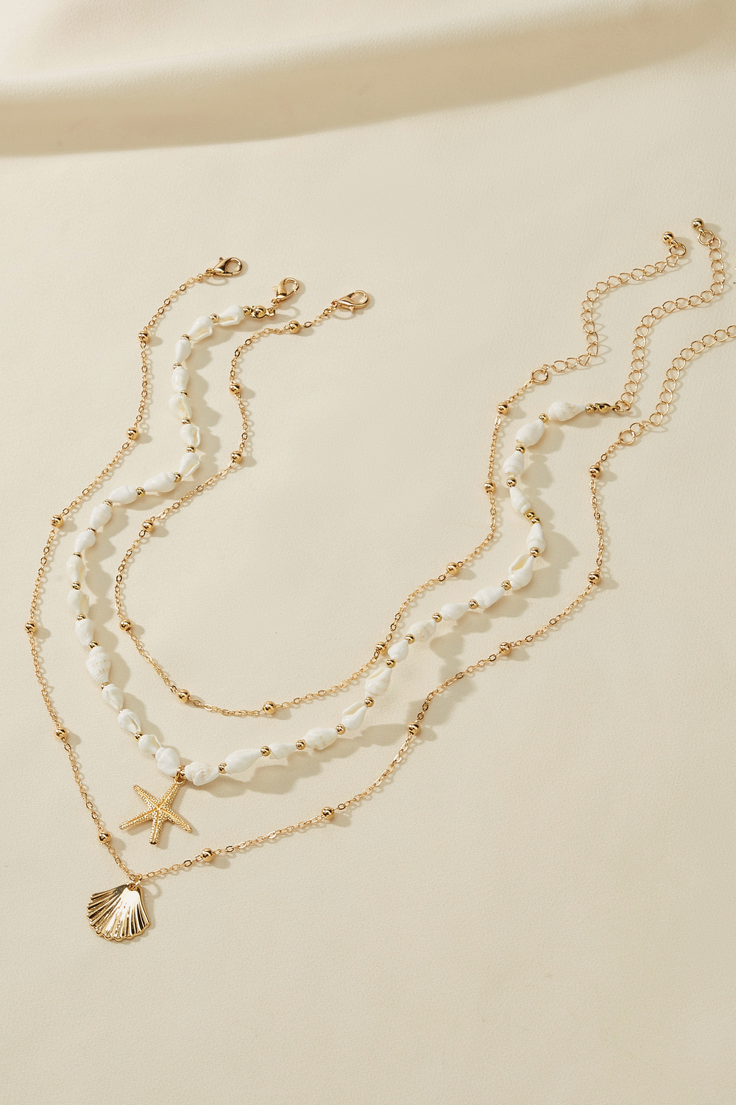 The Mermaid State of Mind Gold-Tone Necklace Set captures seaside elegance with a playful twist! Varied chains, faux pearl beads, and sea motif pendants layer together for a chic, beach-inspired look.
