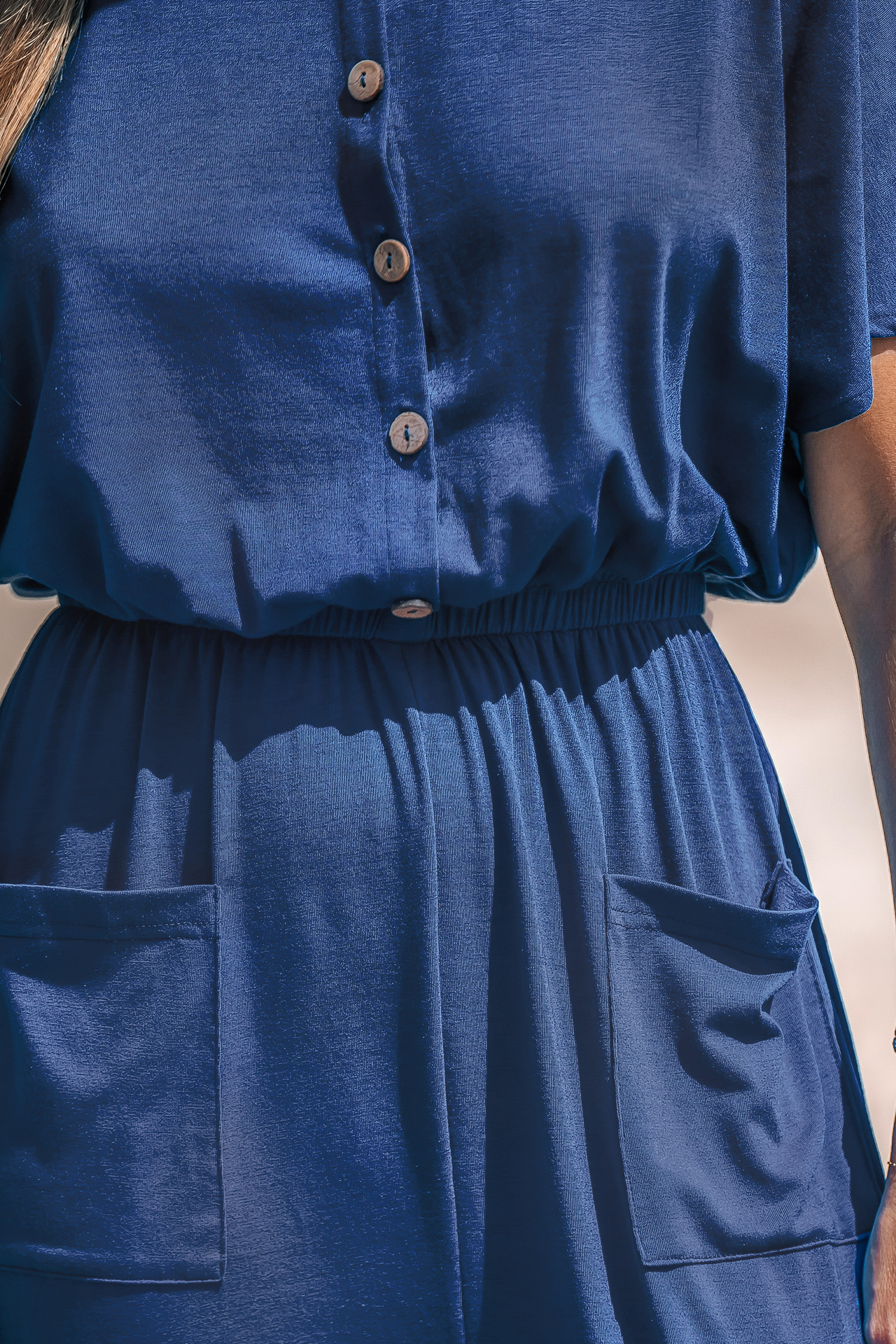 HomeNavy Front Button Straight Leg Jersey Jumpsuit