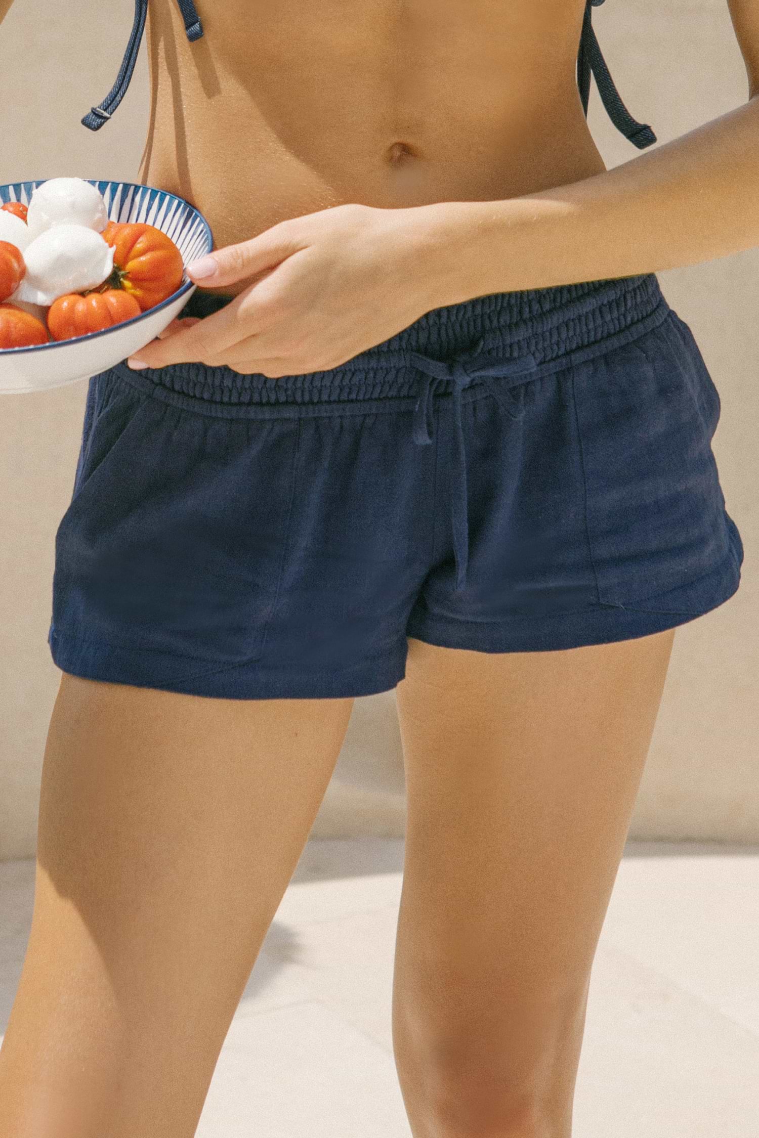 HomeNavy Low-Rise Smocked Waist Straight Leg Shorts