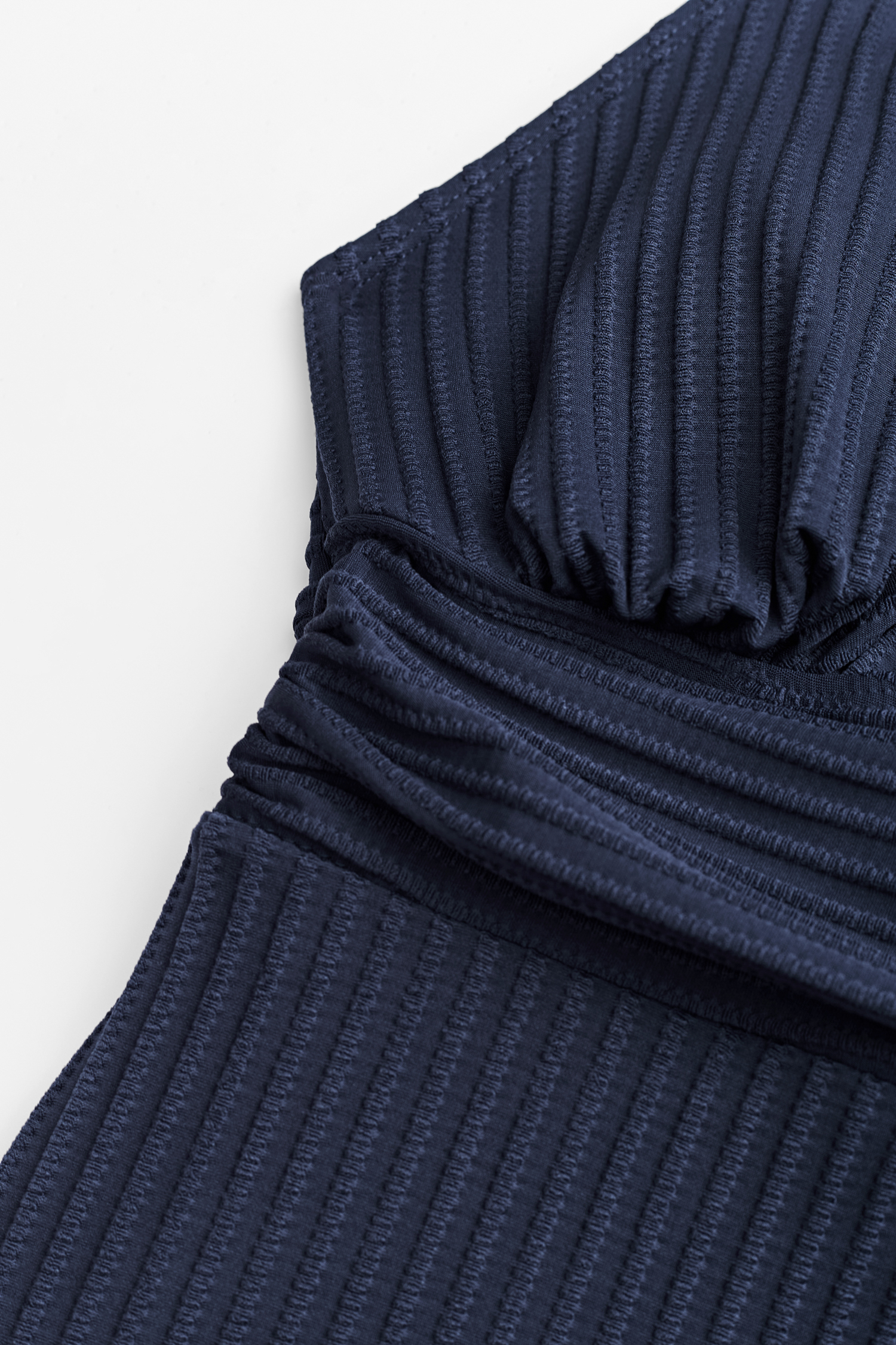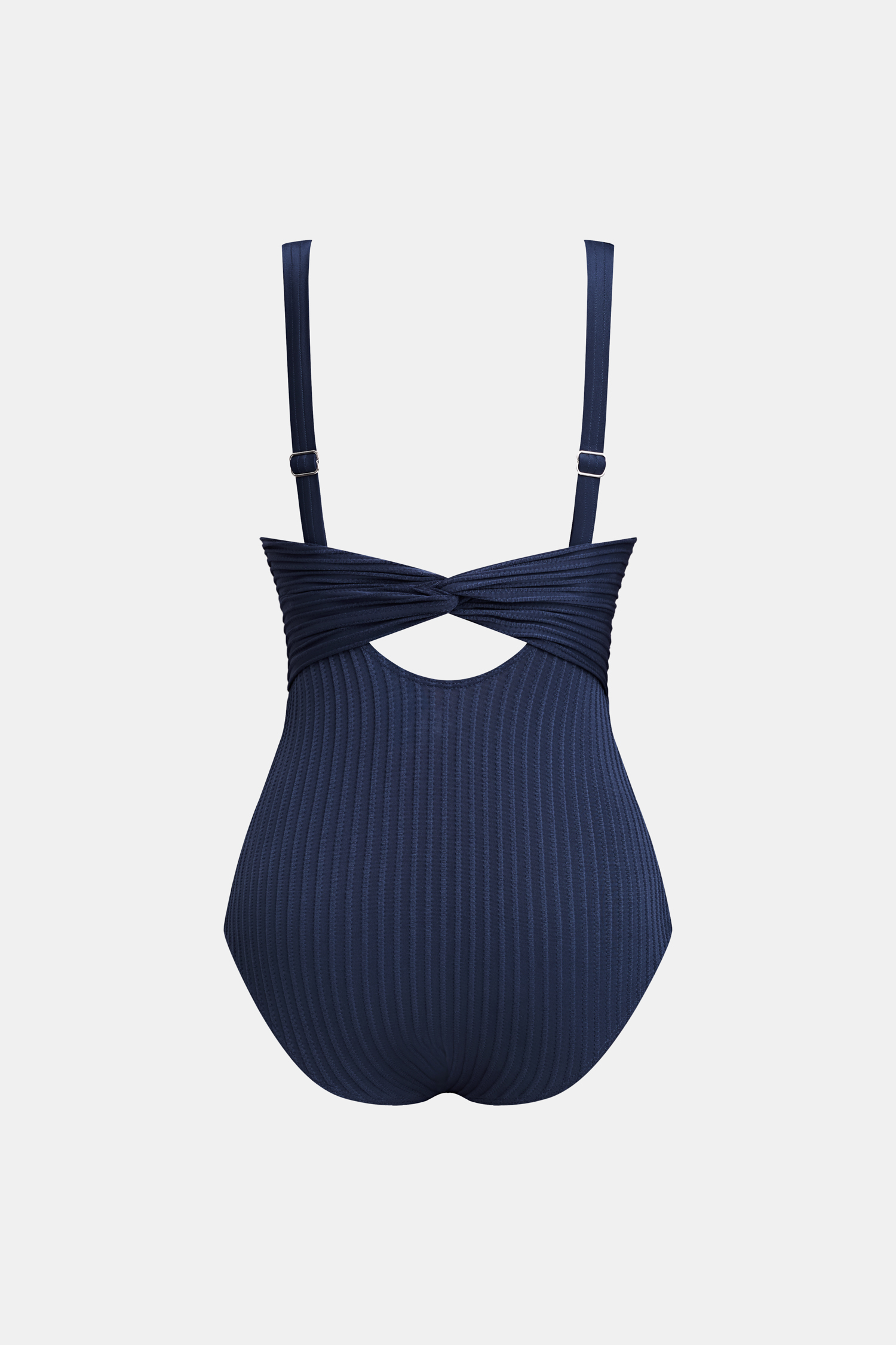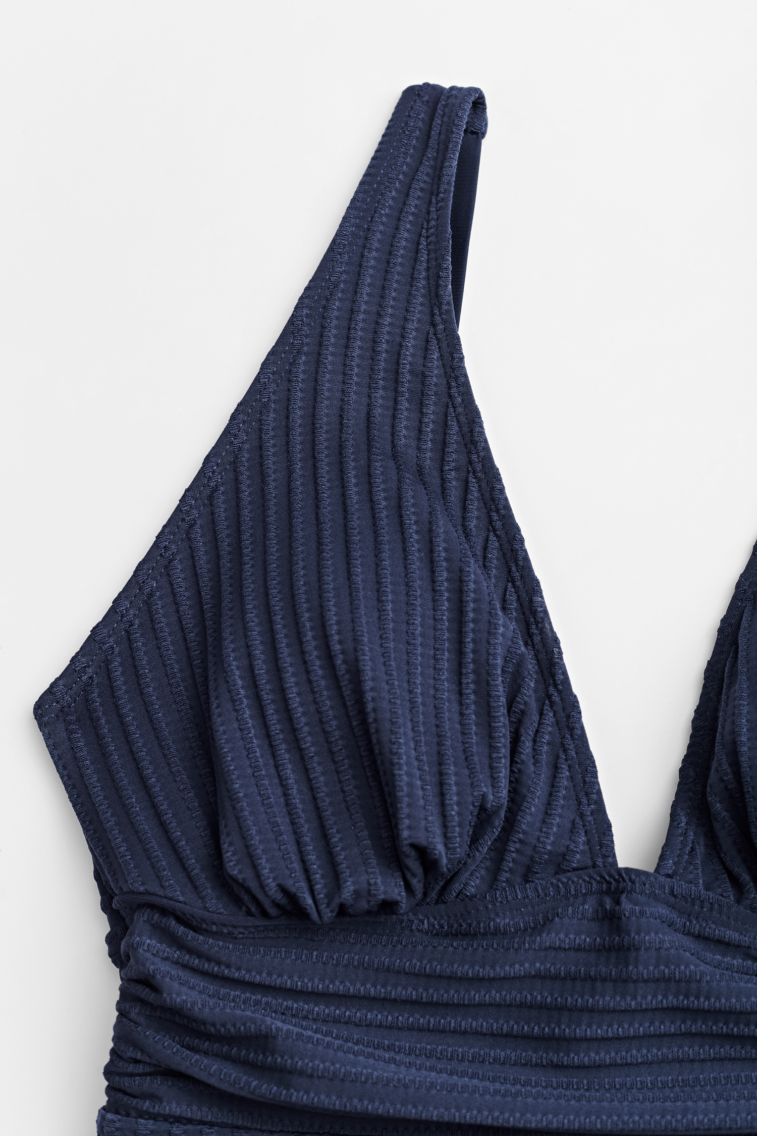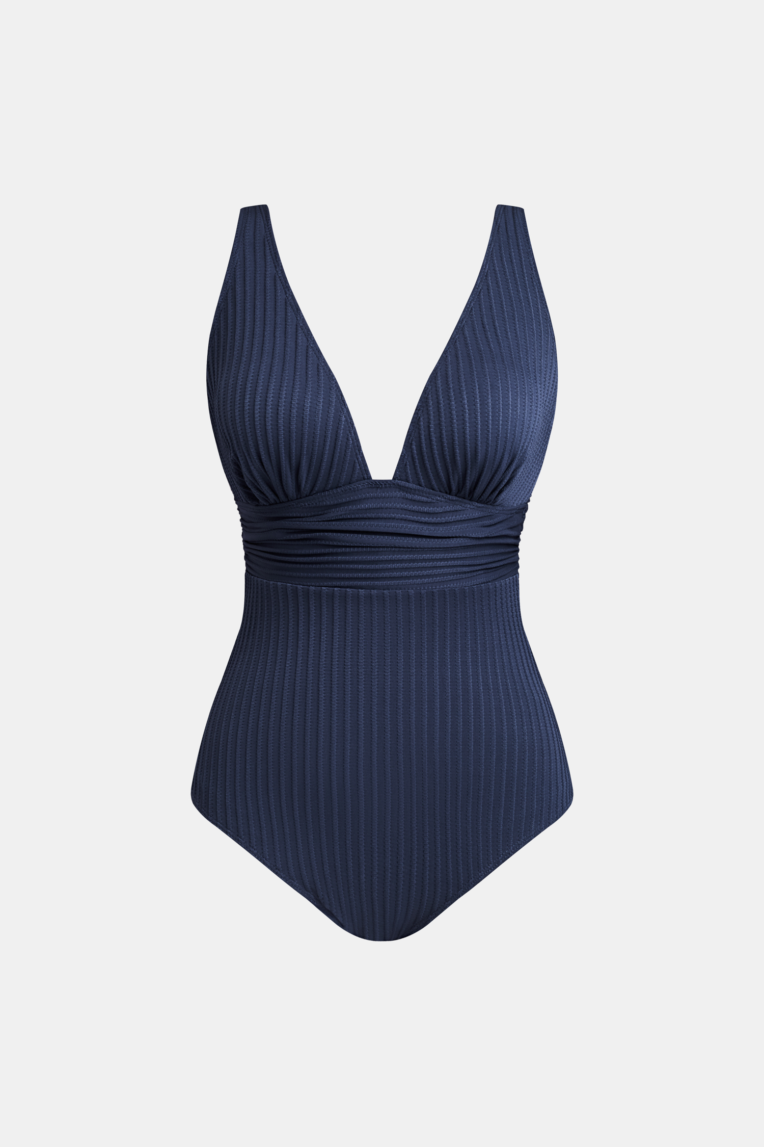 HomeNavy Ribbed & Ruched One Piece Swimsuit