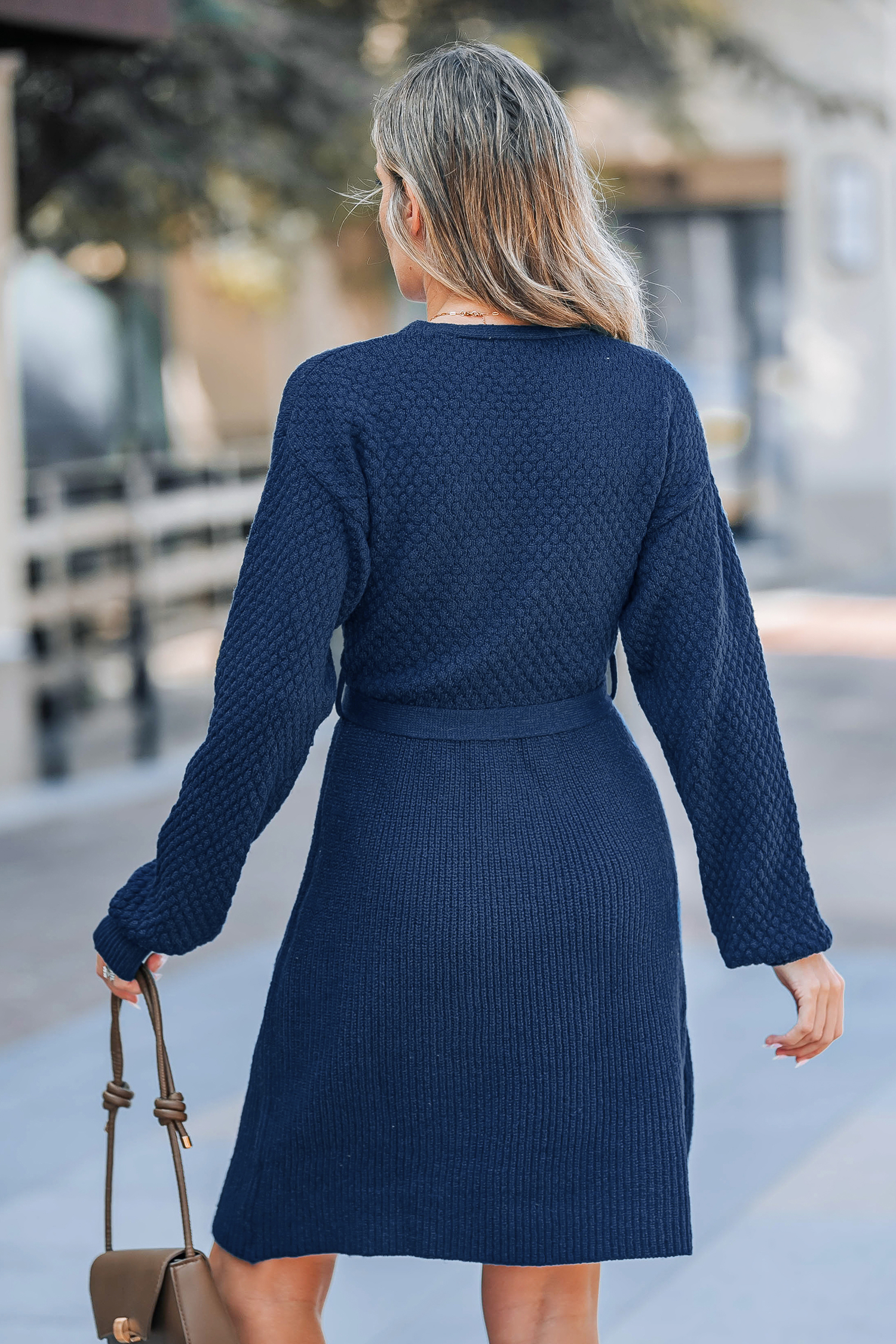 Navy V-Neck Long Sleeve Mini Jumper Dress