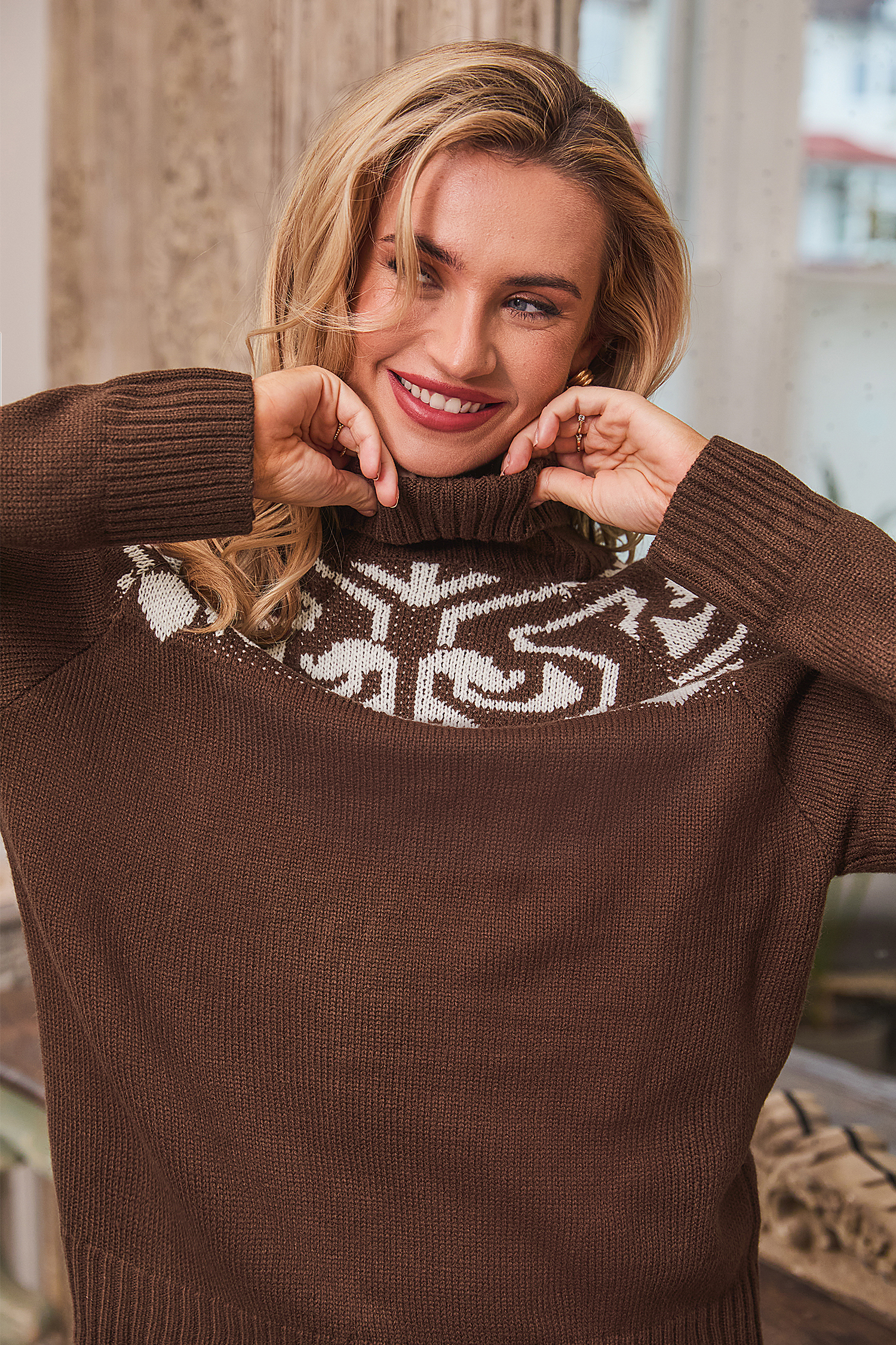 The Nestled In Brown Jumper is warm, cozy, and perfectly inviting! It features a turtleneck and long sleeves for a look that’s snug, stylish, and ready for any chilly day.
