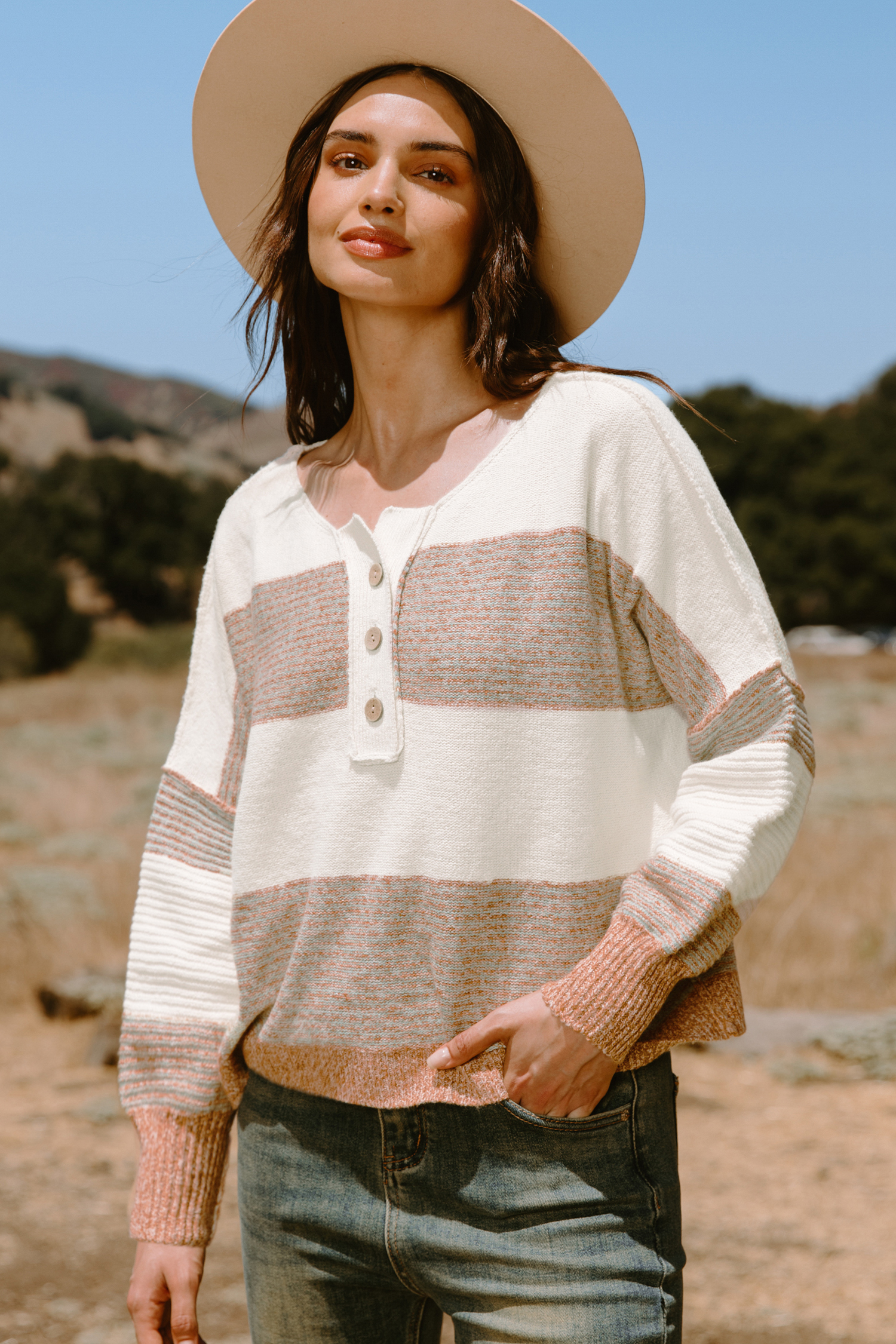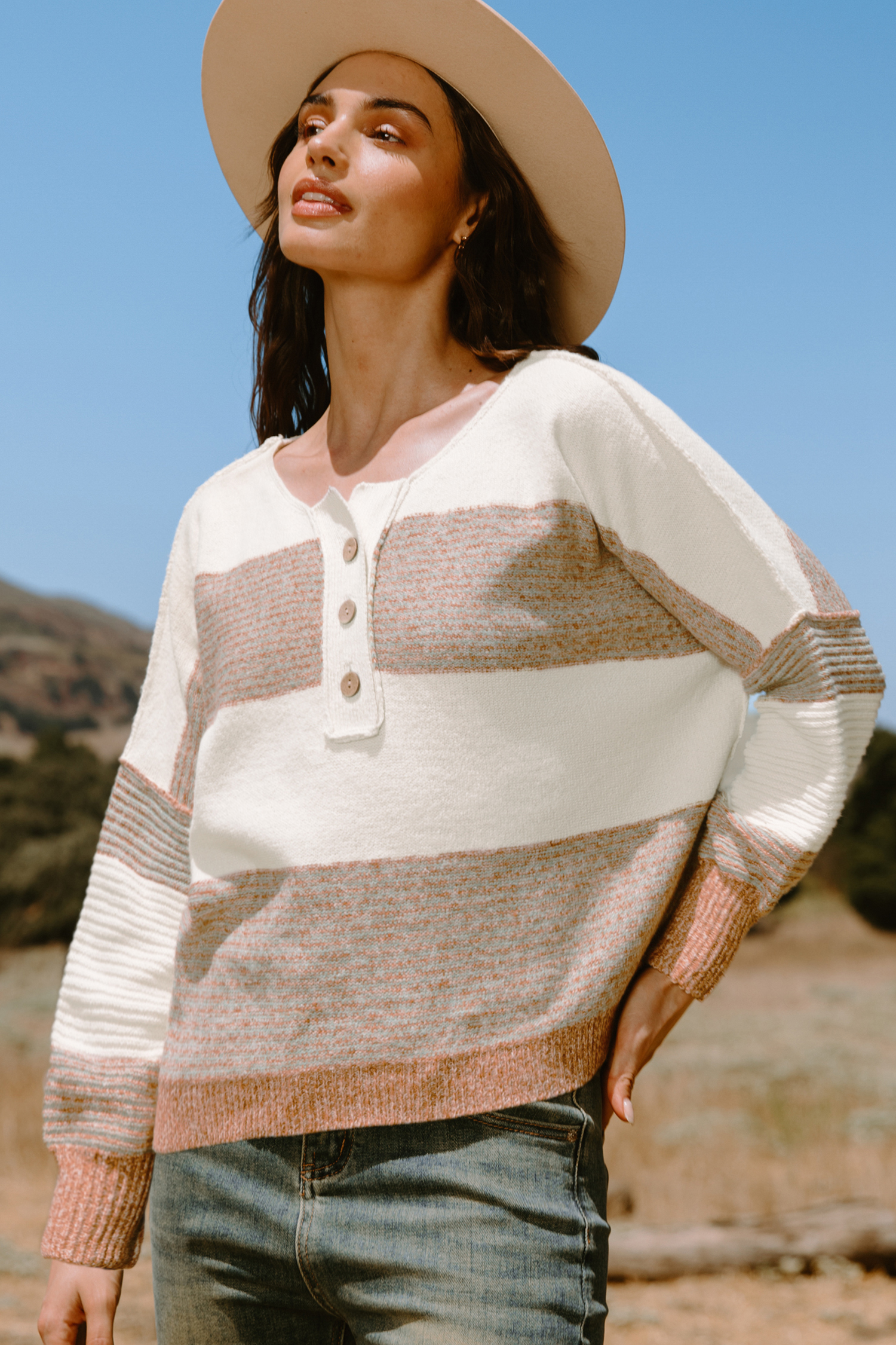 Stripes never go out of style, especially in the Neutral Striped Drop Shoulder Long Sleeve Sweater. With its relaxed drop shoulders and soft neutral tones, this sweater is perfect for effortless, laid-back style.