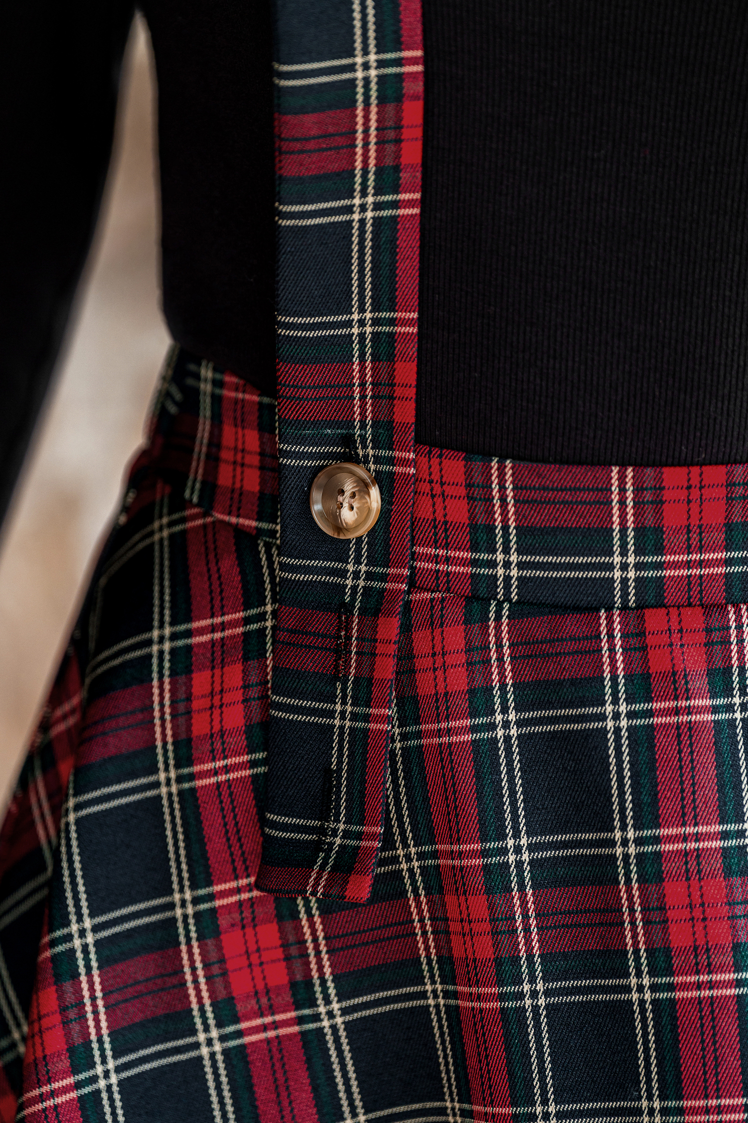 The New Chapter Plaid Mini Skirt is ready for whatever comes next! The elasticized waist, suspenders, and mini length make it playful and classic.