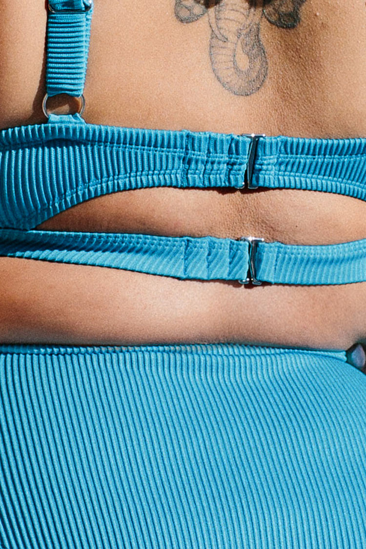 Plus Size Blue Texture Tummy Control Bikini Swimsuit
