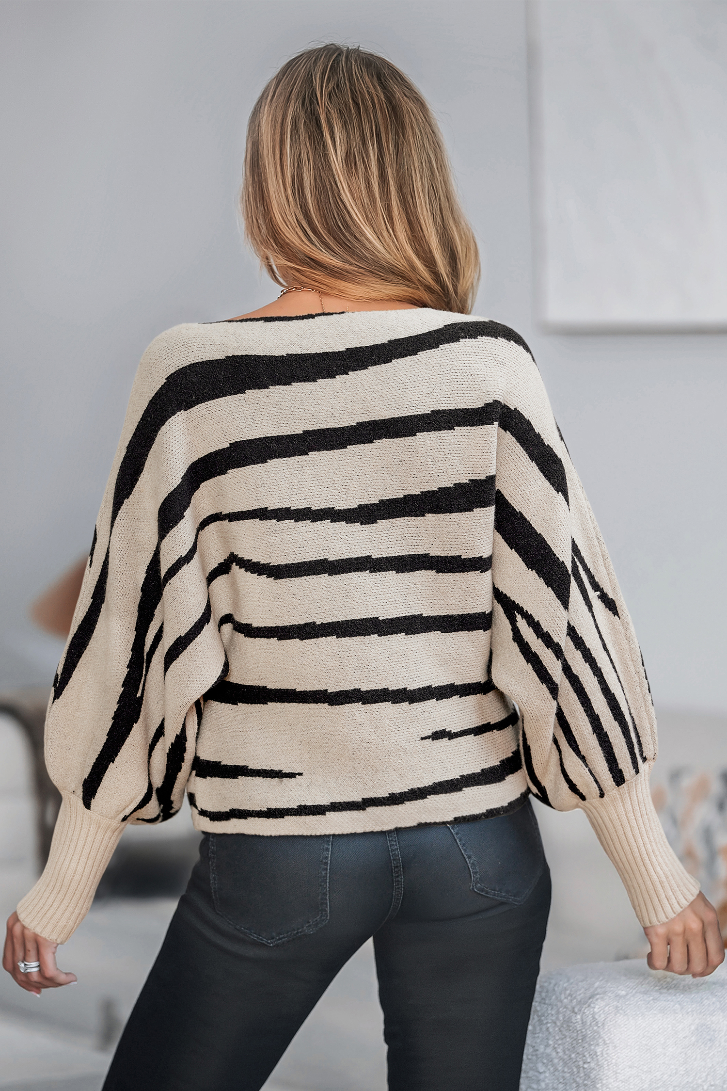 This relaxed striped jumper features off-shoulder styling and an oversized fit with classic black and cream stripes. The ribbed cuffs and hem add structured detail to the casual silhouette. Perfect for weekend wear and effortless layering with your favourite pieces.