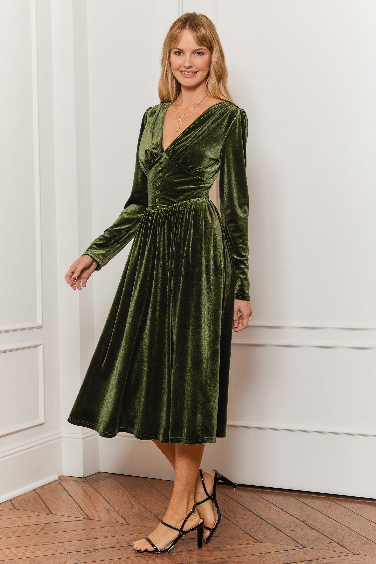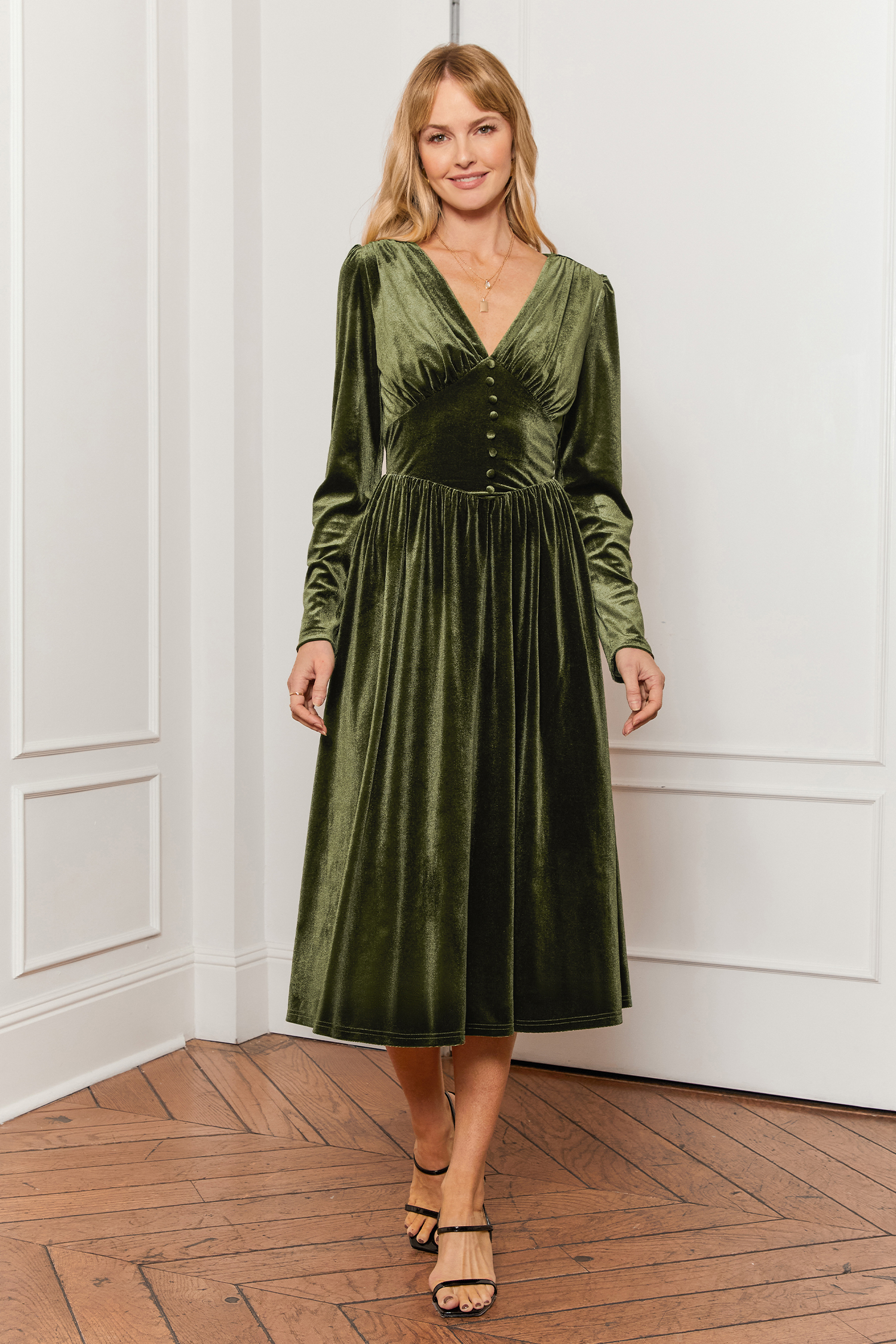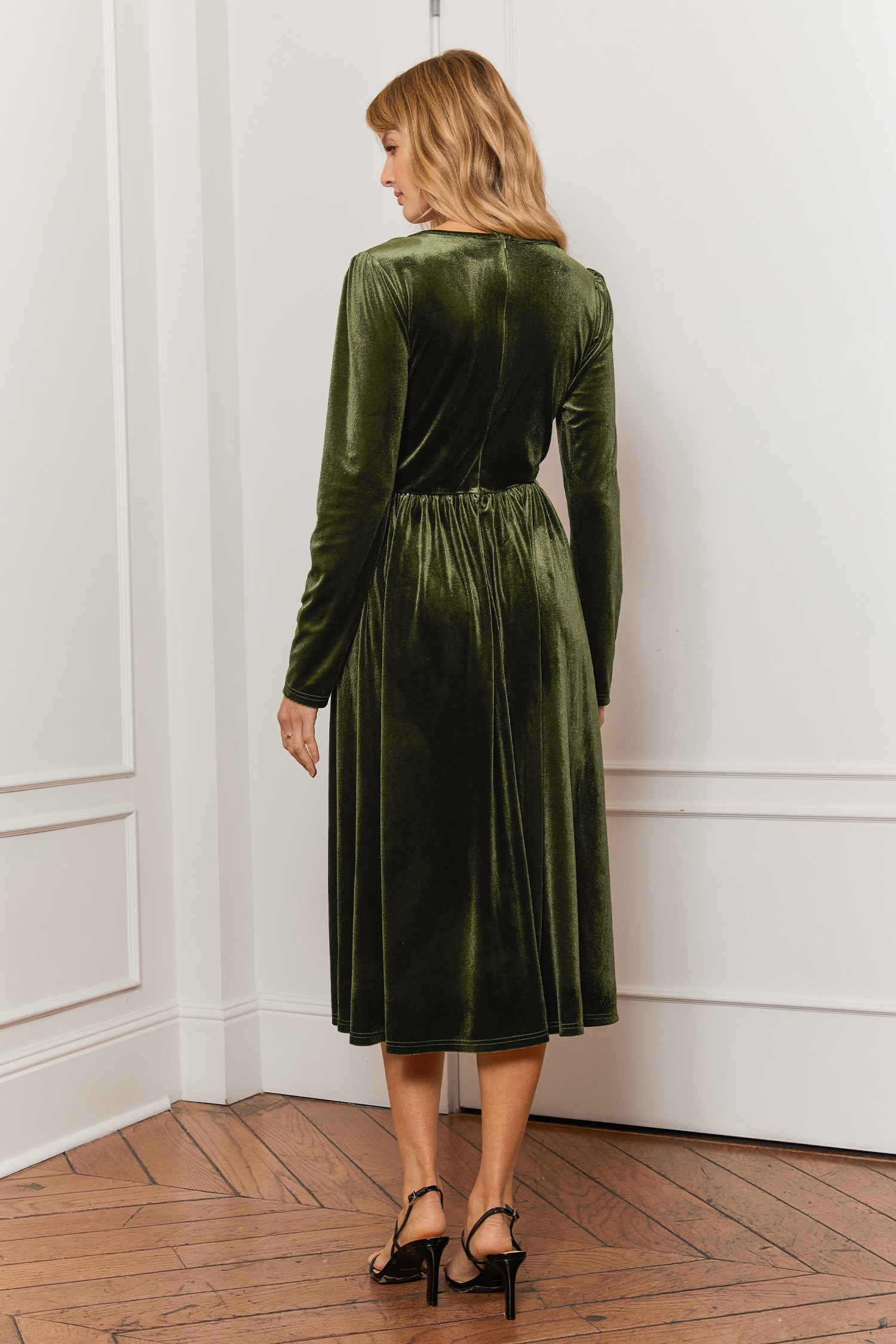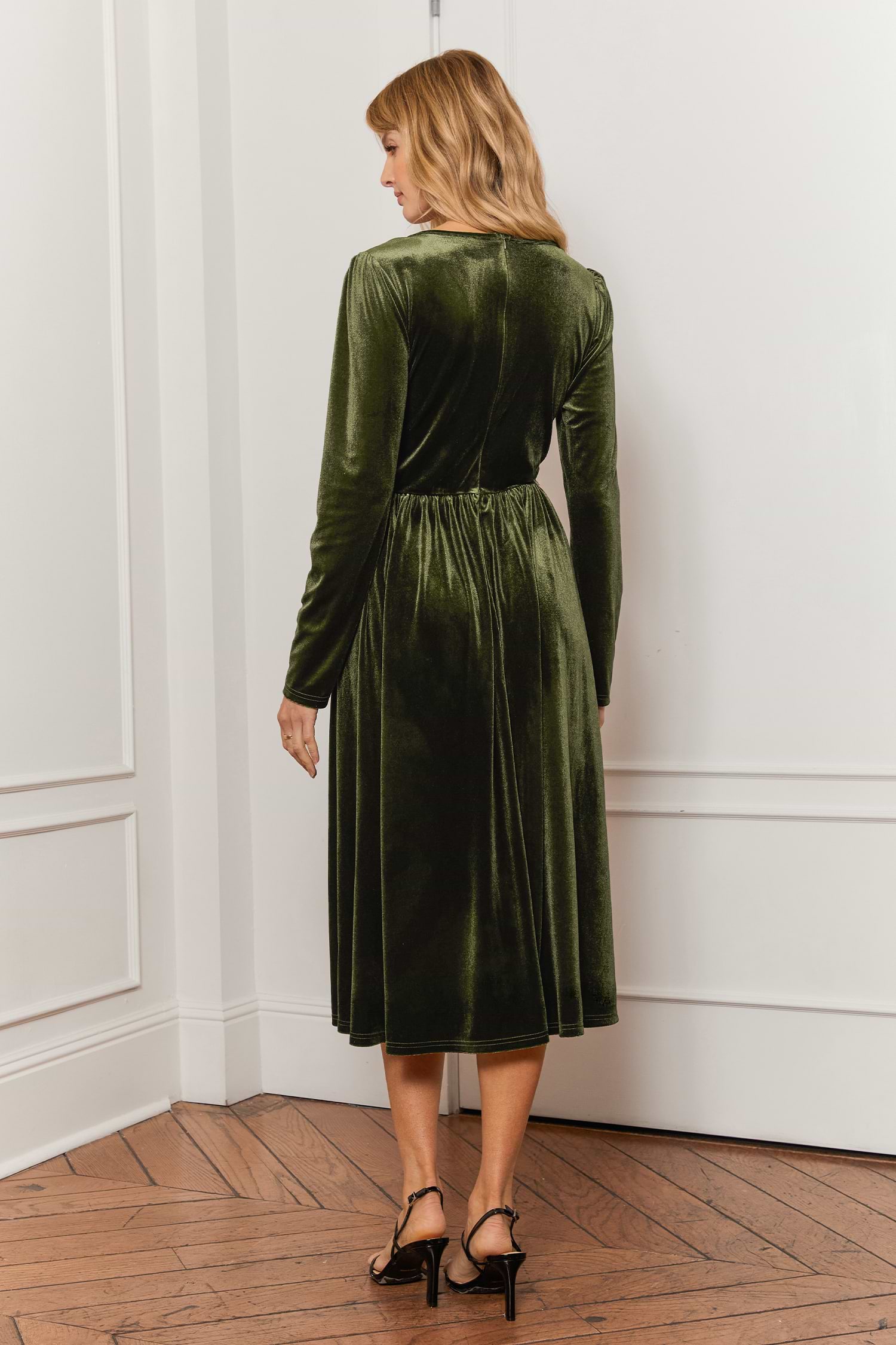 Olive Green Velvet Long Sleeve Maxi Dress