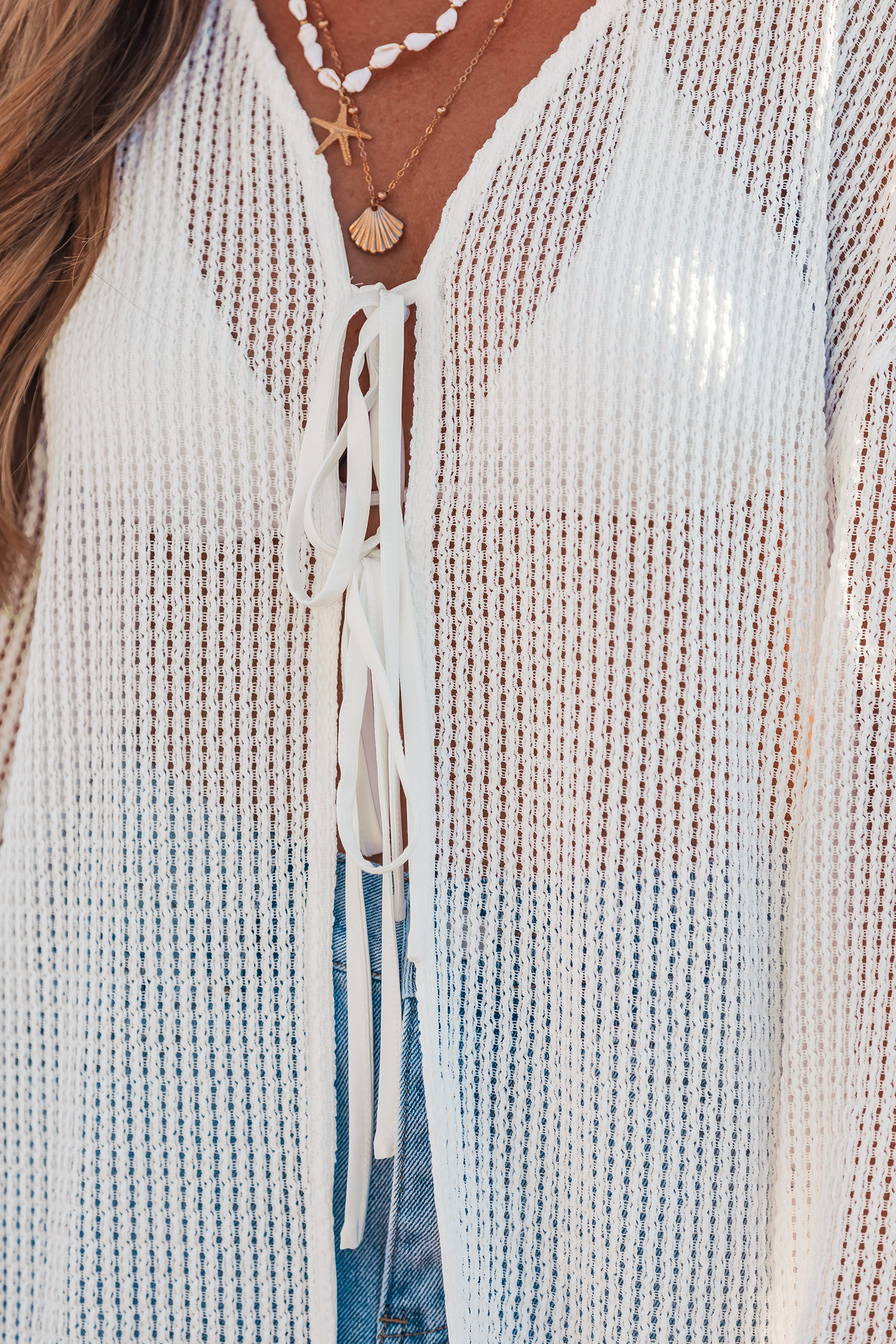 The Out the Door White Cover-Up Kimono is perfect for when you want to throw something on and go! A V-neckline, long sleeves, and front-tie keep it relaxed, easy to style, and ready for any pool outing.