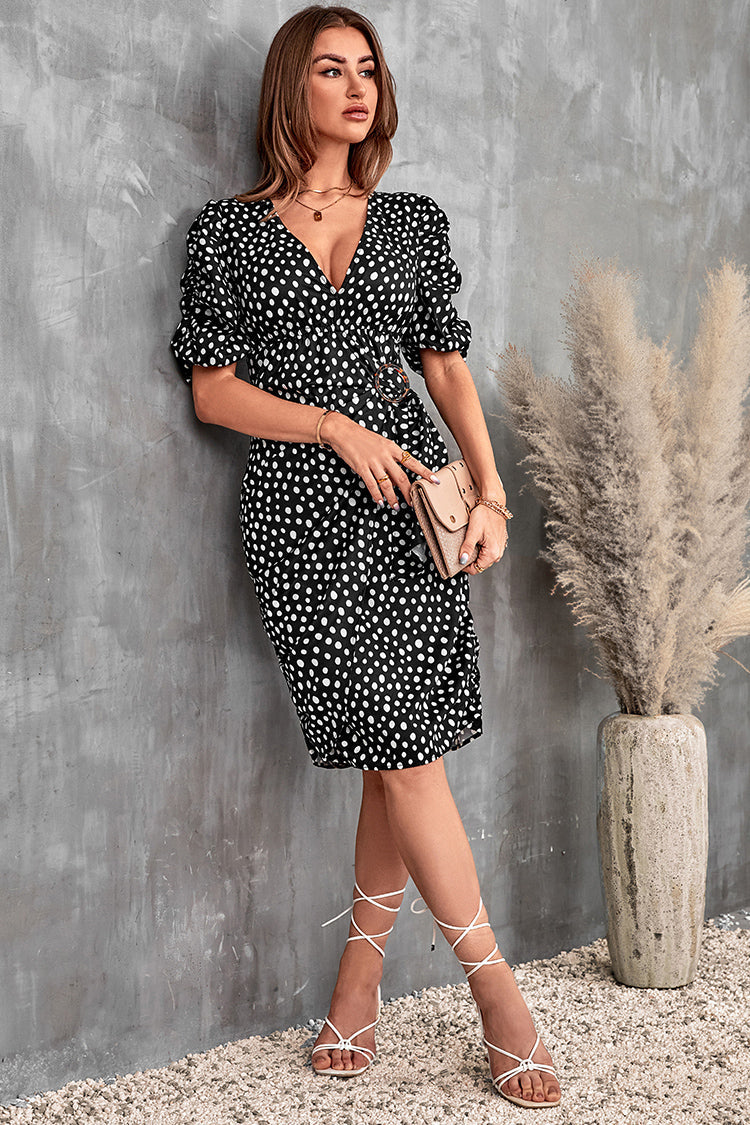 Palizzi V-neck Short Sleeve Fitted Waisted Dress