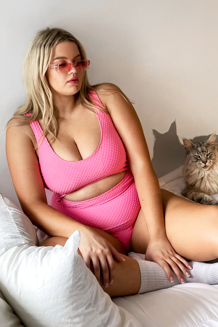 HomePlus Size Texture Cutout One Piece Swimsuit