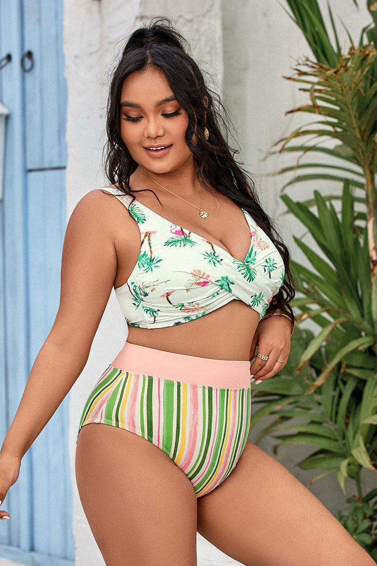 Plus Size Wrap Front Bralette and Banded Bikini Swimsuit